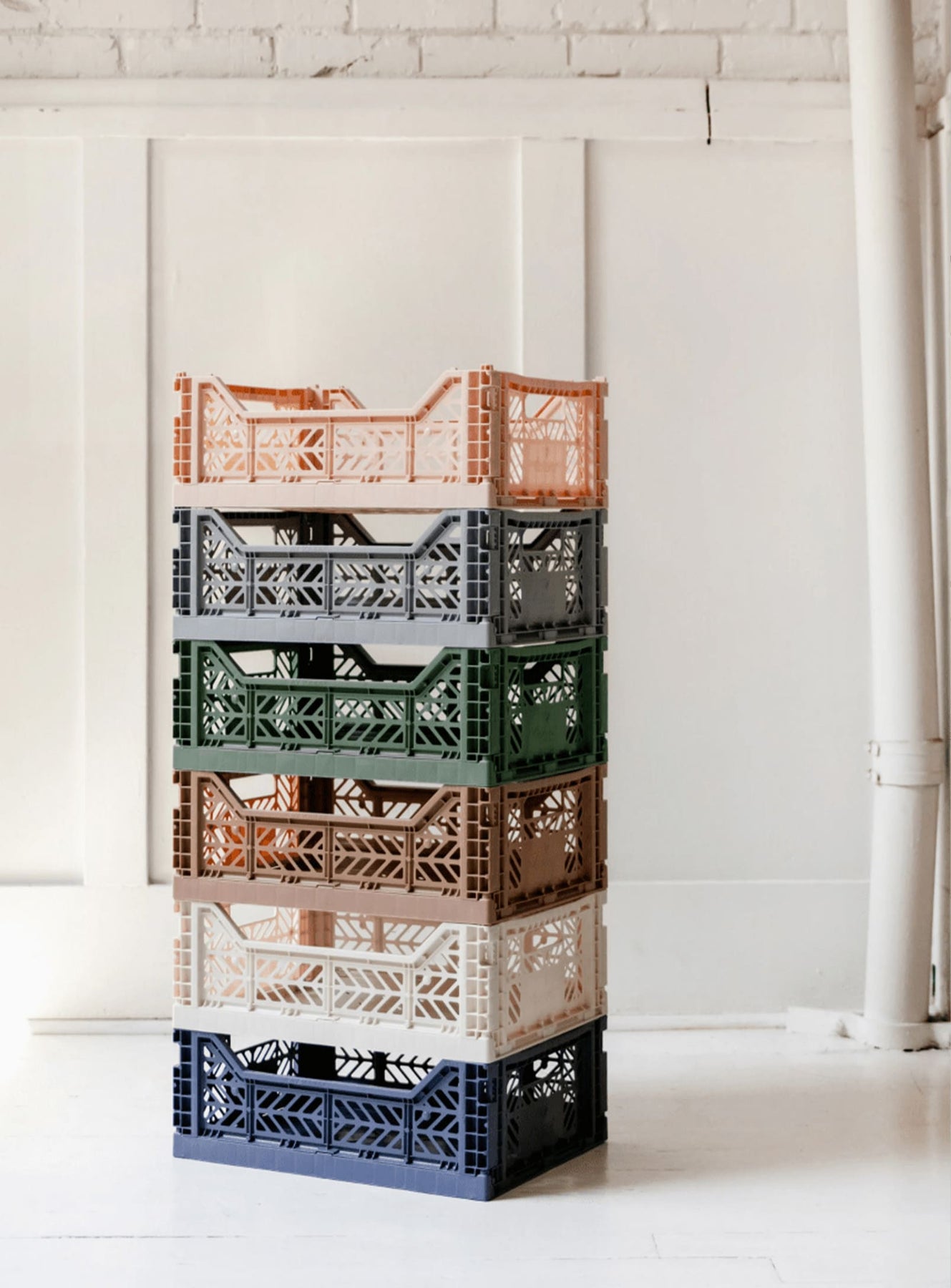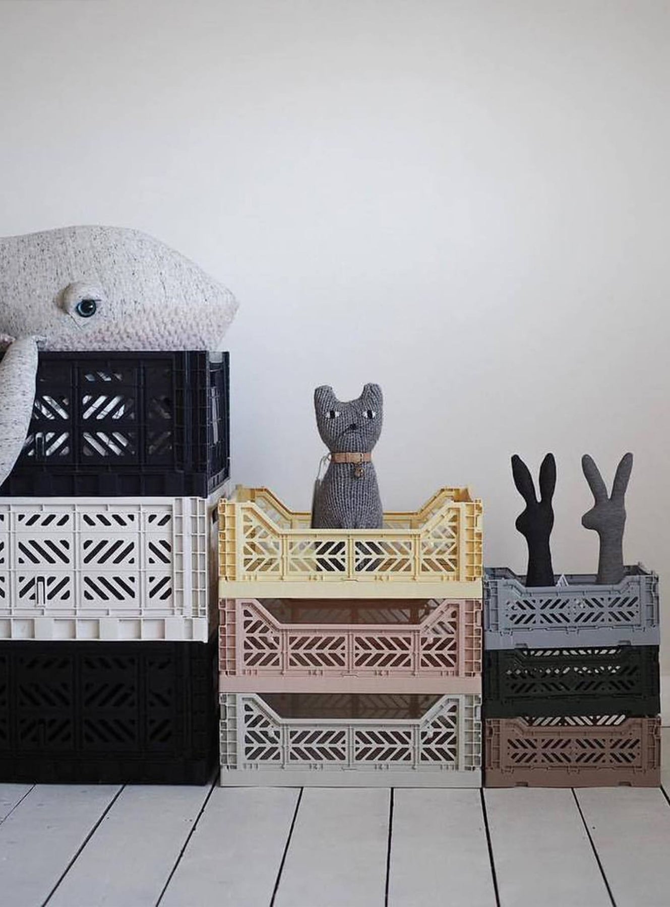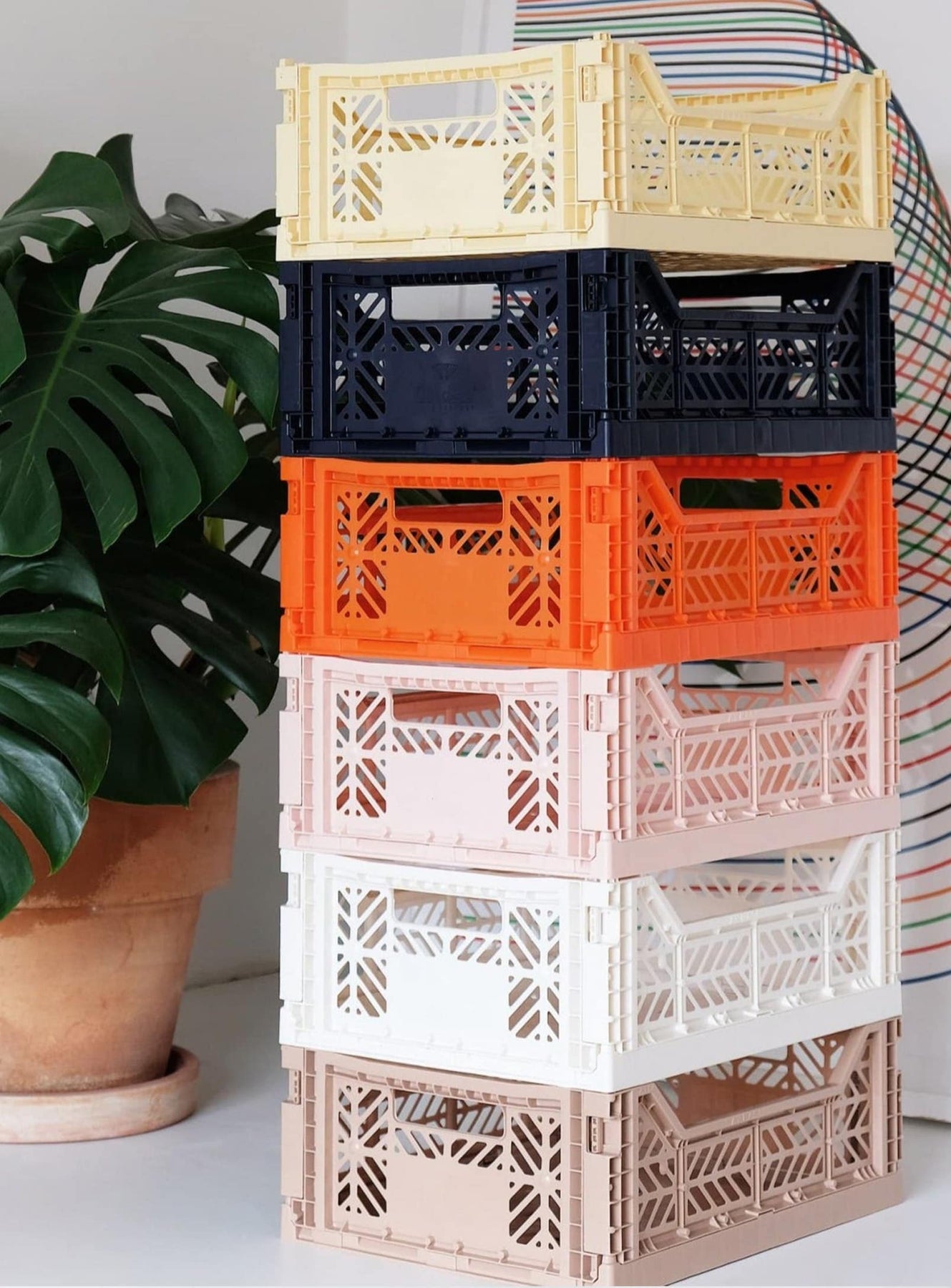 Caisses pliantes Aykasa, rangement modulable et design coloré pour toute la maison.