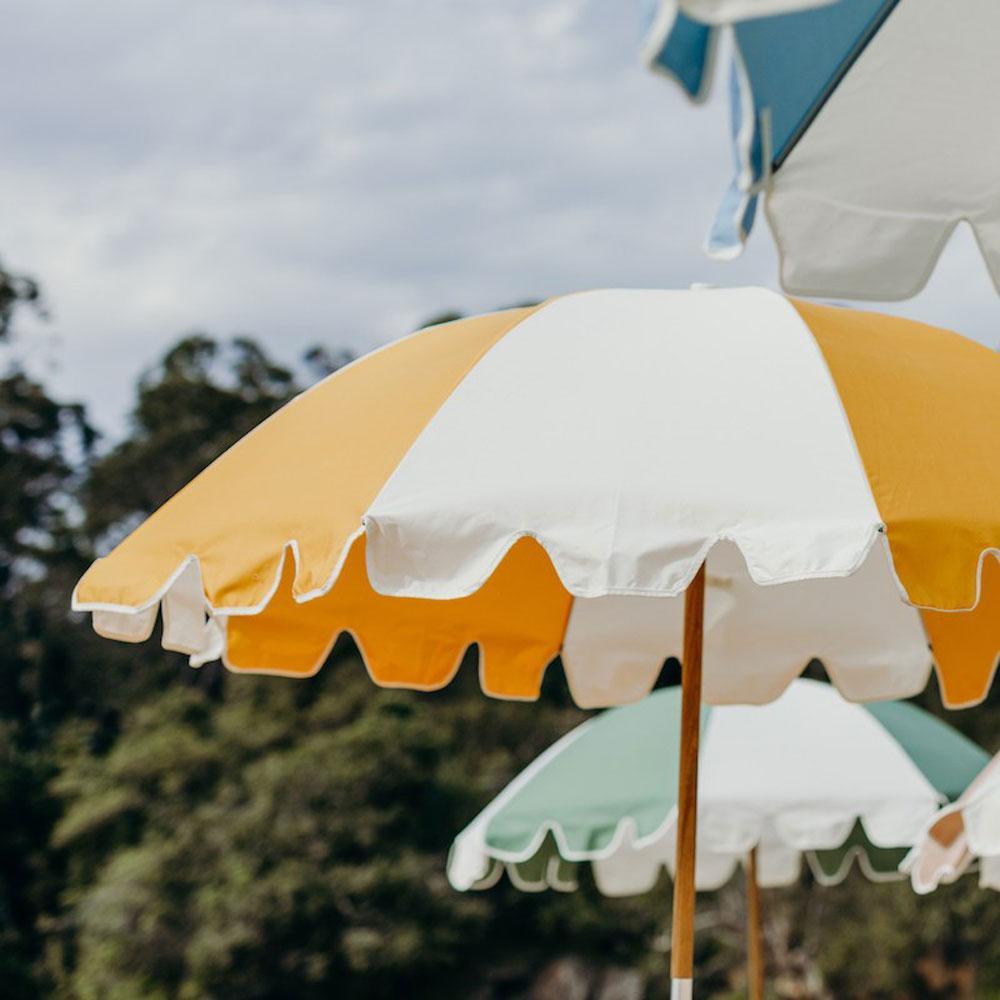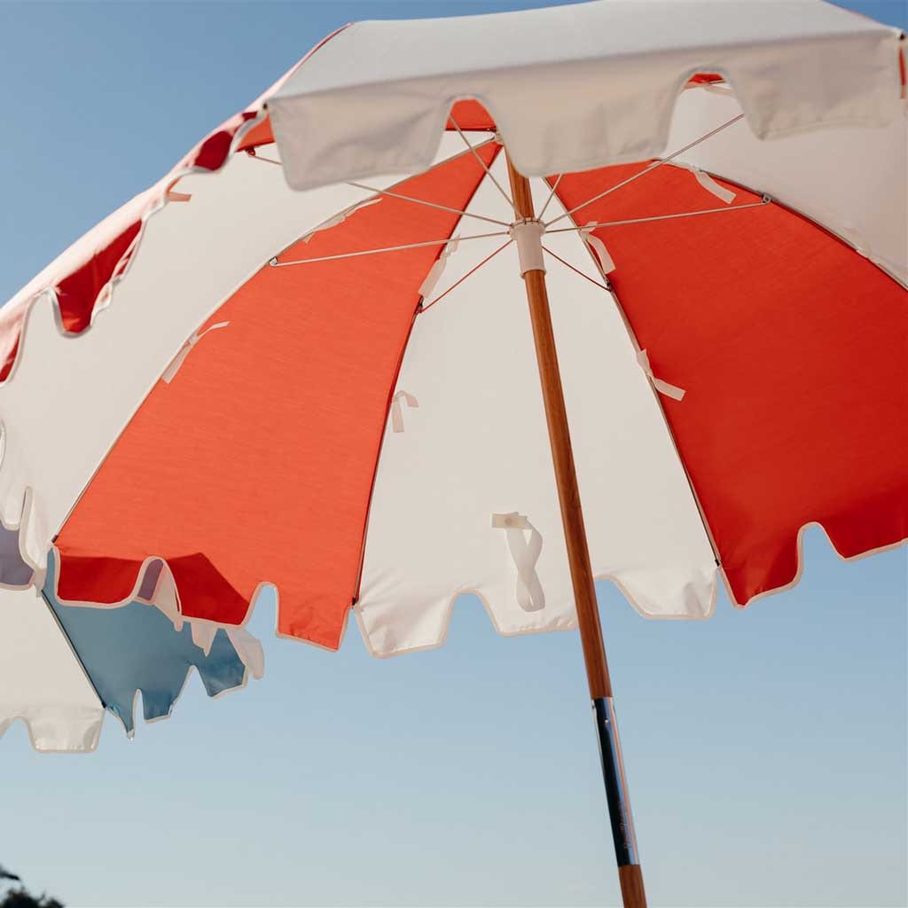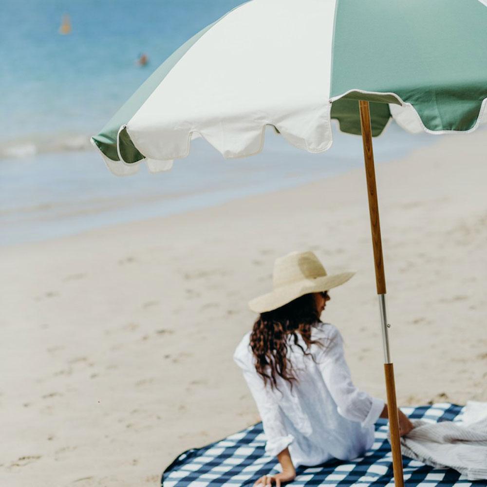 Le Weekend Umbrella par Basil Bangs est un parasol léger et portatif, parfait pour la plage, et disponible en plusieurs couleurs.