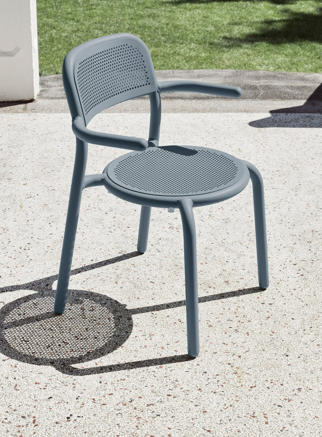 Toní de Fatboy : la chaise de jardin avec bras en aluminium, résistante aux intempéries. Empilable, élégante et durable. Design unique et solide.
