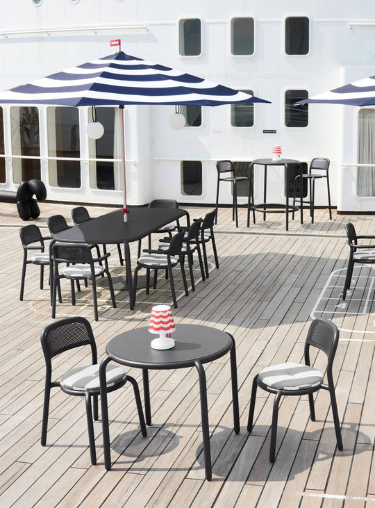 Optez pour la chaise Toní de Fatboy, un design bistrot en aluminium léger, empilable et disponible en couleurs éclatantes. Anthracite.