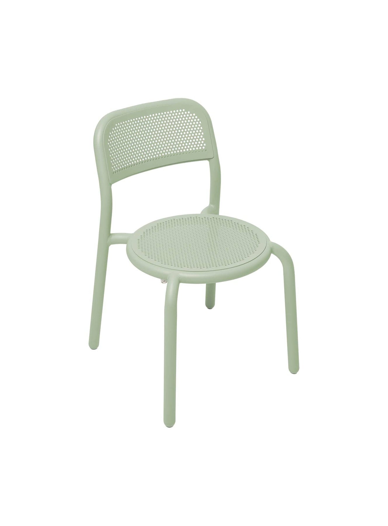 Chaise Toní de Fatboy : aluminium léger, empilable et couleurs variées. Idéale pour un jardin ou terrasse dynamique et confortable.