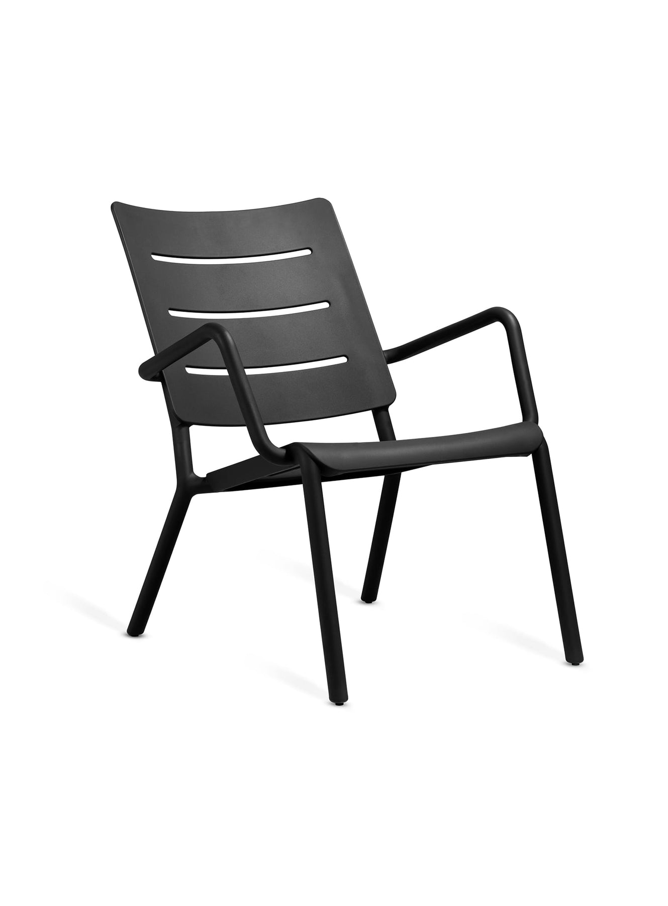 Ajoutez du confort à vos espaces extérieurs avec la collection OUTO de TOOU : des sièges légers, résistants et empilables. Noir.