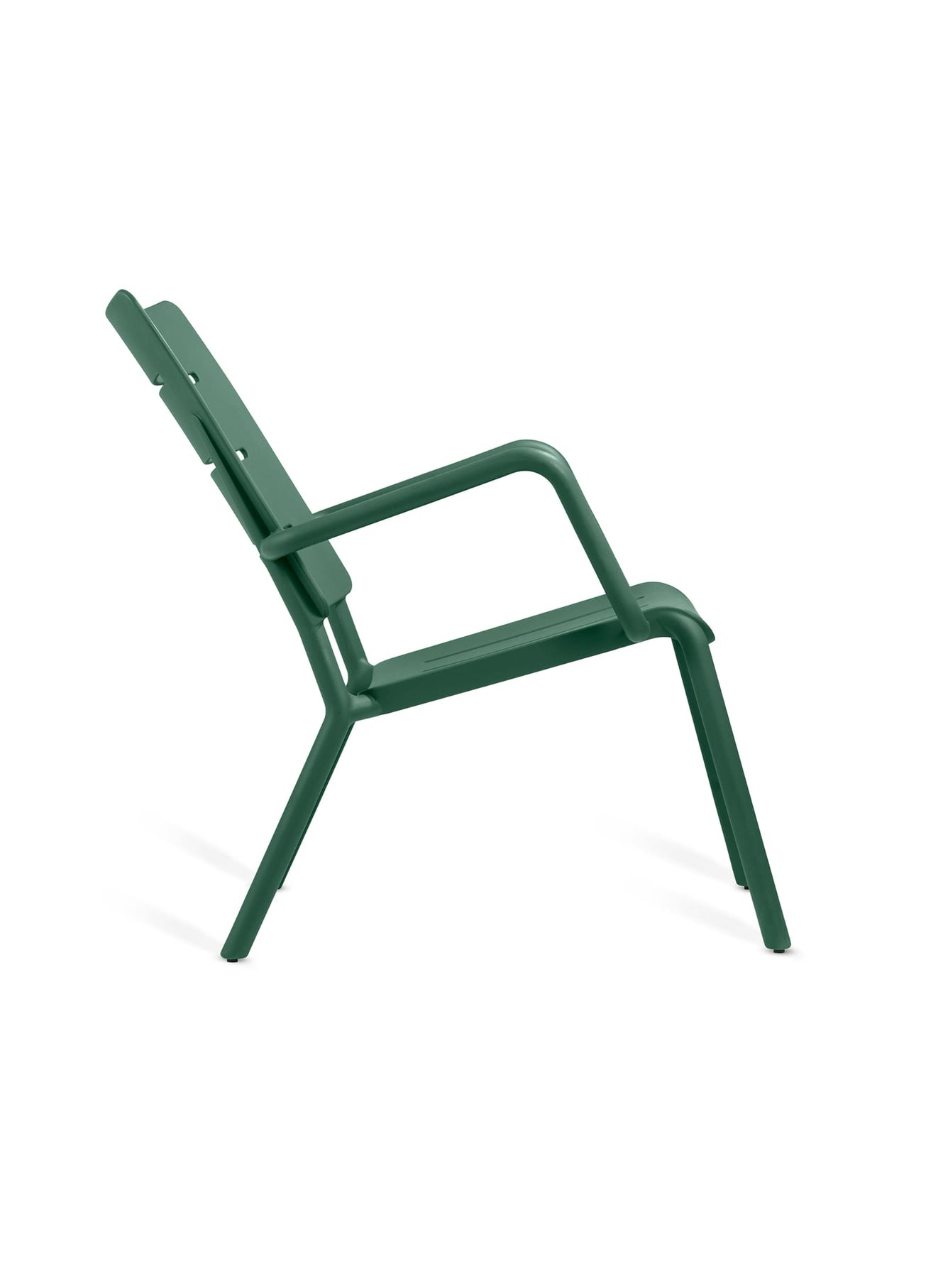 OUTO de TOOU : des chaises et fauteuils modernes, imperméables et conçus pour affronter toutes les conditions climatiques. Vert foncé.