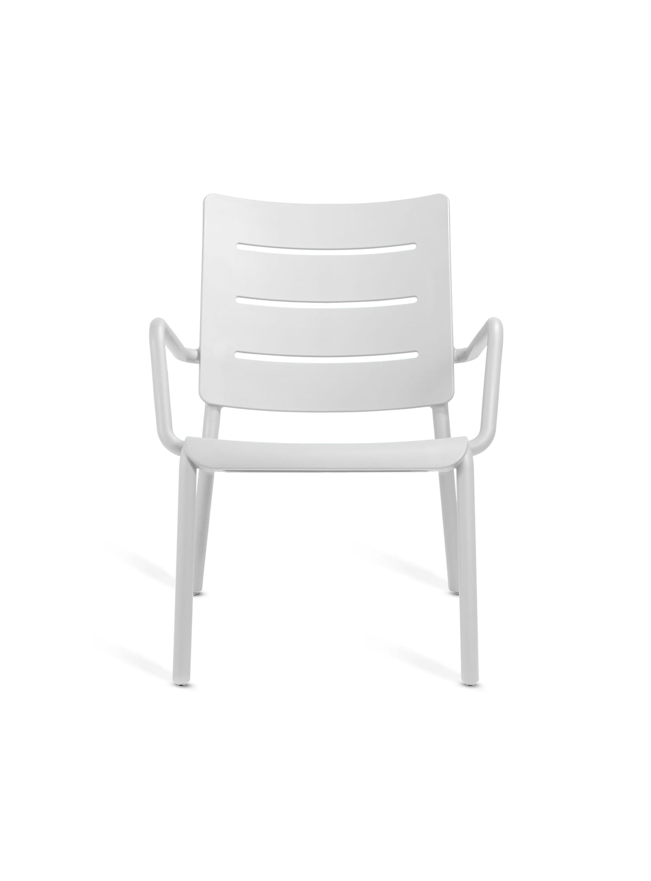 Collection OUTO par TOOU : des sièges au design intemporel, empilables et adaptés à tous vos besoins intérieurs ou extérieurs. Blanc.