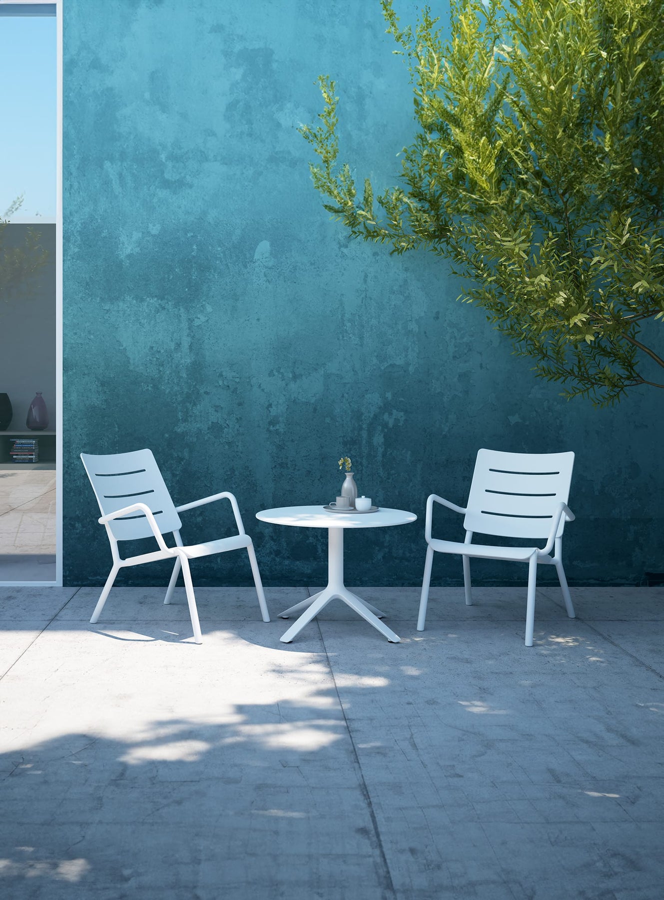 Des fentes bien conçues permettent aux gouttes de pluie de s'écouler rapidement et laissent passer les rafales de vent, des mérites fonctionnels qui définissent également le style distinctif de cette famille. Les différentes pièces qui forment ensemble la famille OUTO, fournissent des solutions qui s'adaptent réellement aux contextes extérieurs et intérieurs, par exemple avec des chaises (ou des fauteuils) qui se fondent les unes dans les autres ou dans n'importe quelle table. Ou avec des accessoires complémentaires tels que la table de connexion, qui permet de marier deux ou plusieurs fauteuils à la suite pour un mariage en extérieur, une conférence en intérieur ou simplement une causeuse.