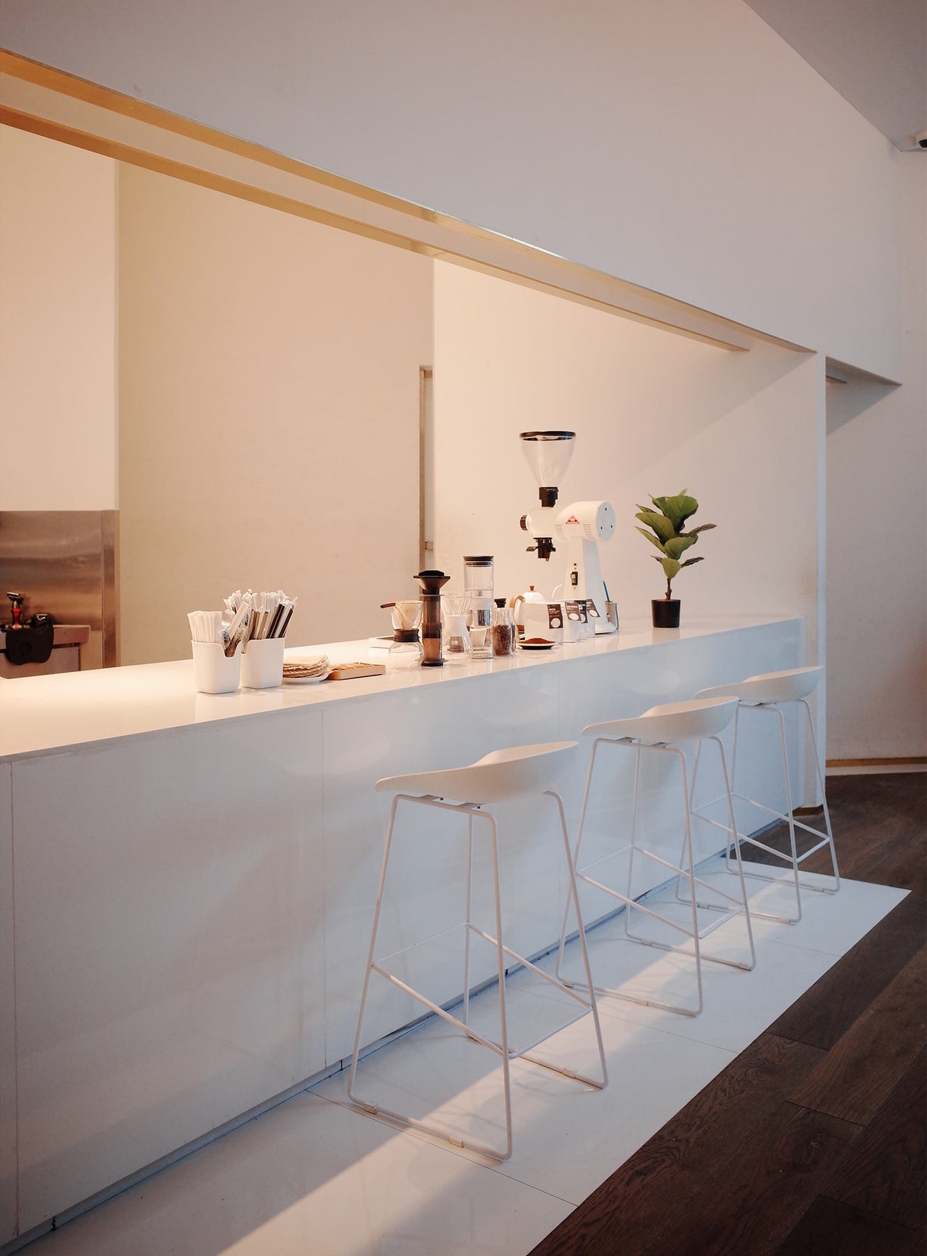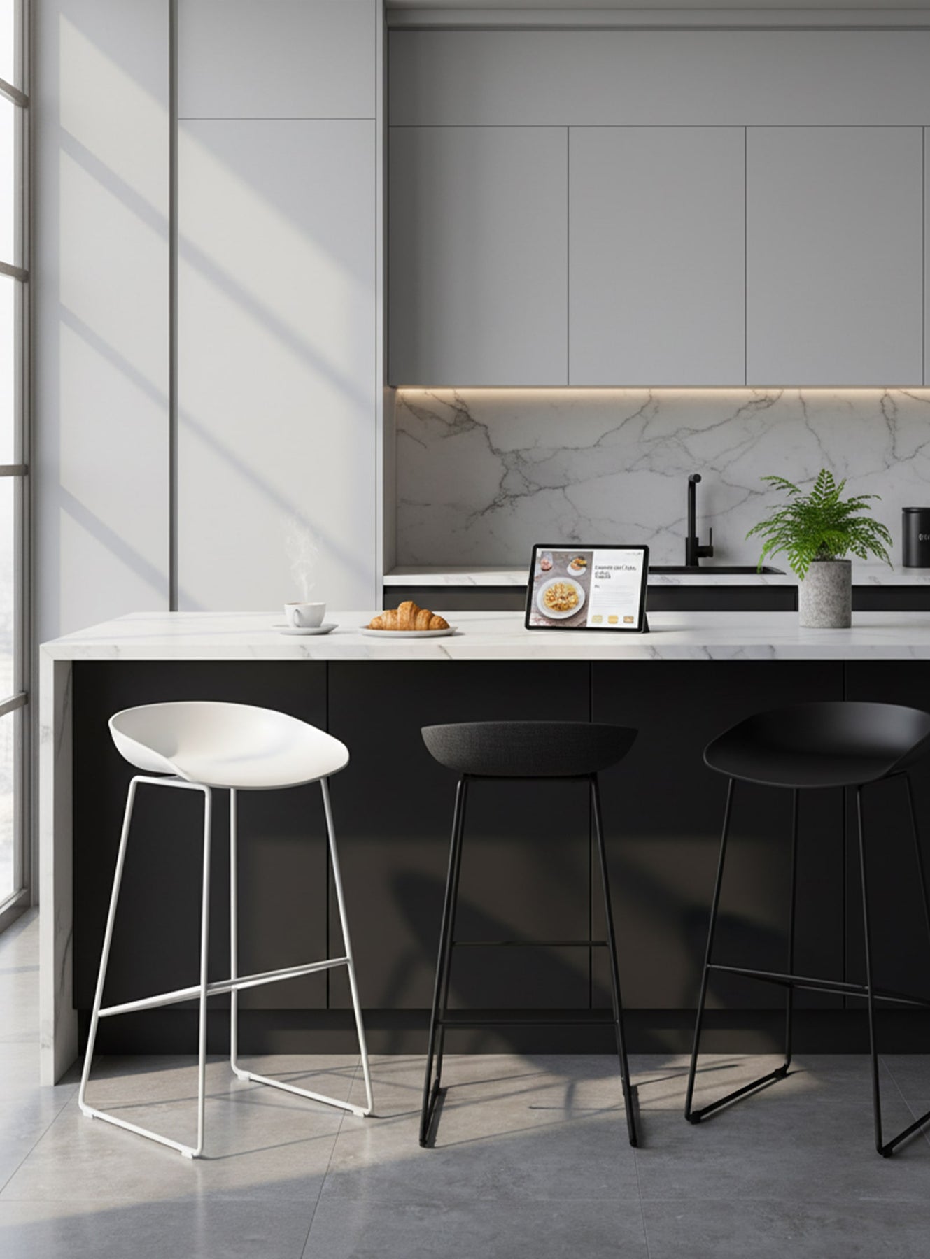 Tabouret About 38 : silhouette élégante et stabilité parfaite. blanc et chrome