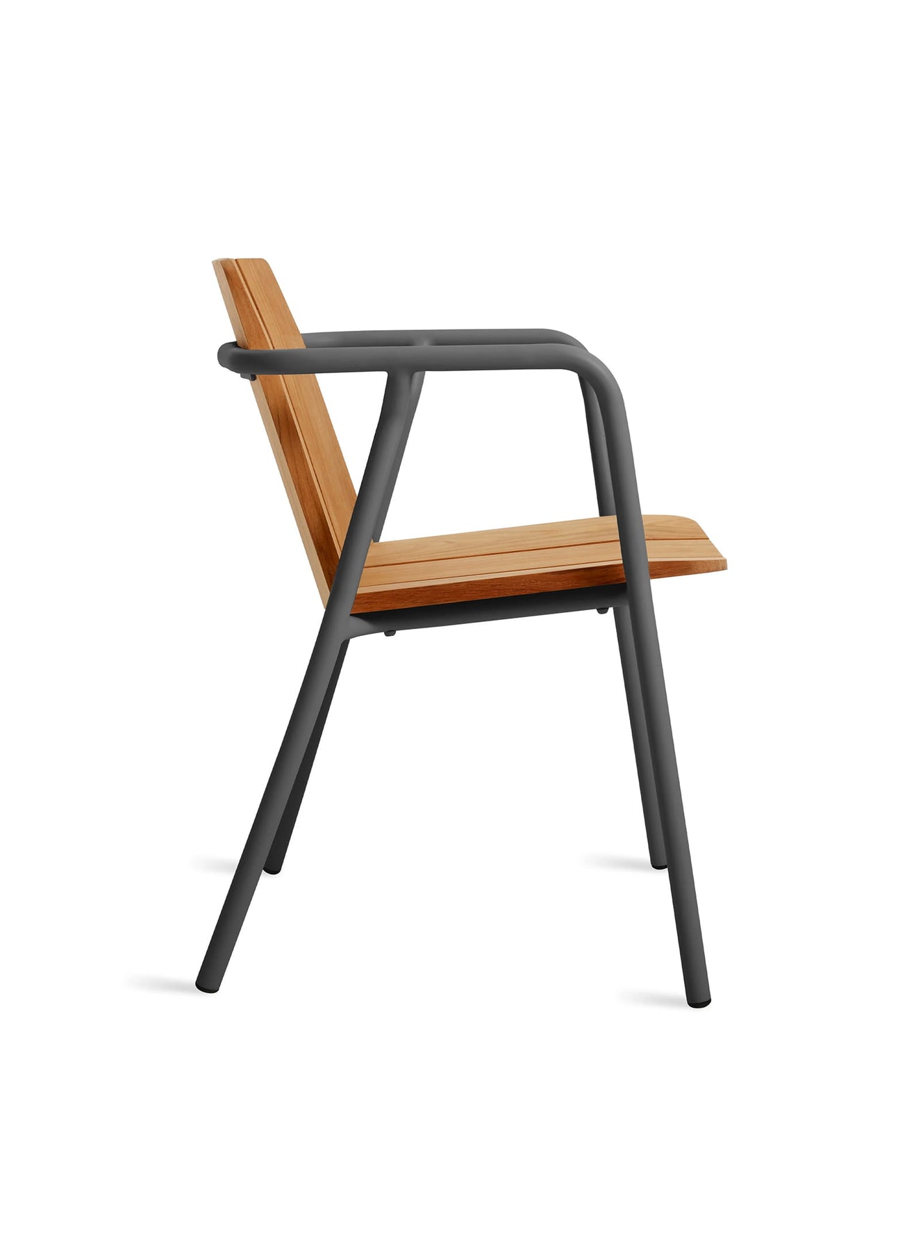 Chaise Offline de Blu Dot teck certifié FSC et base aluminium stable. noir