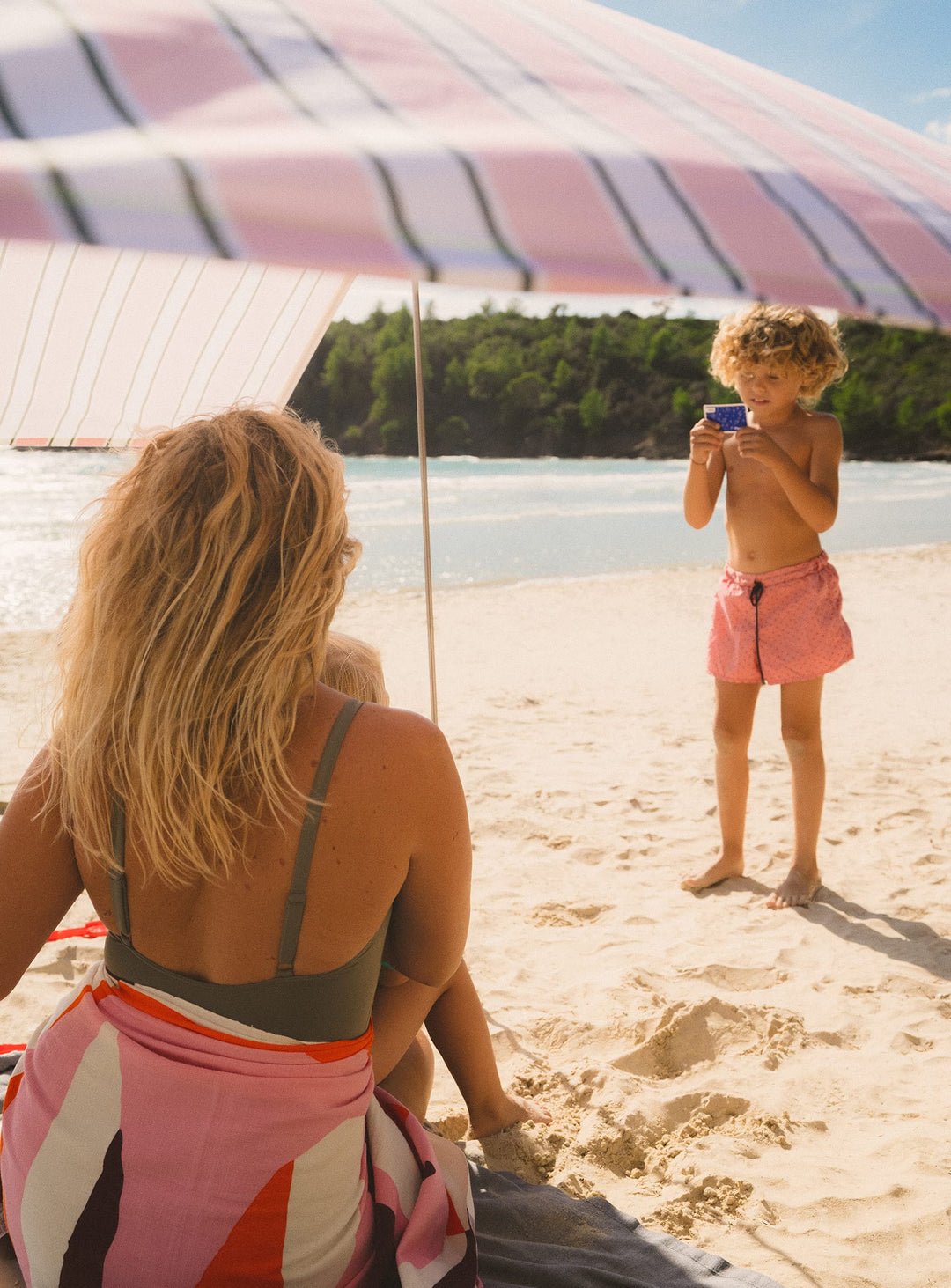 Tente Miasun de Fatboy : une solution pratique et stylée pour vous protéger du soleil, idéale pour les familles en déplacement.
