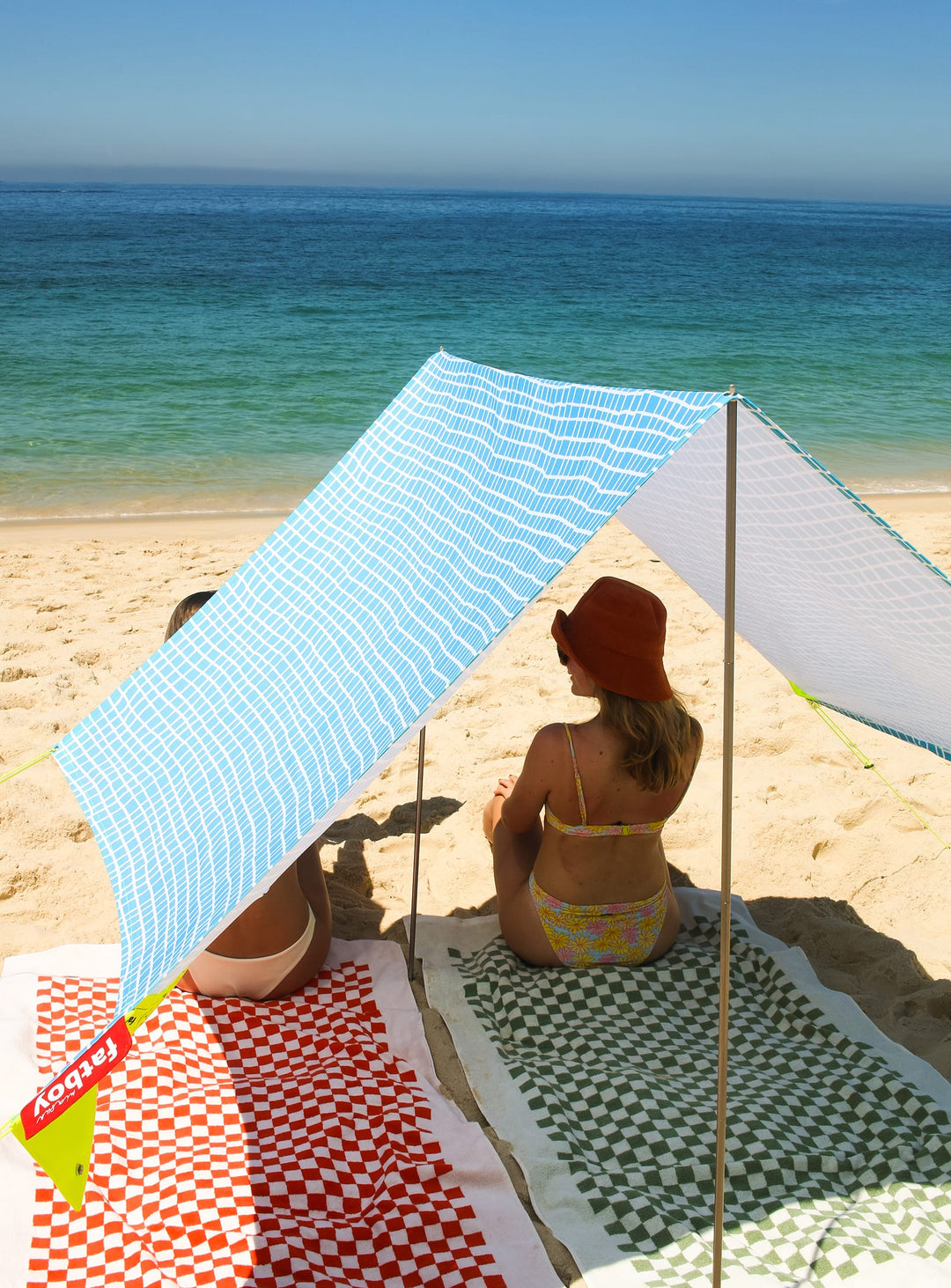 Tente Miasun de Fatboy chez Nüspace : un abri portable et élégant pour deux adultes et deux enfants. Montage en quelques minutes. Azur
