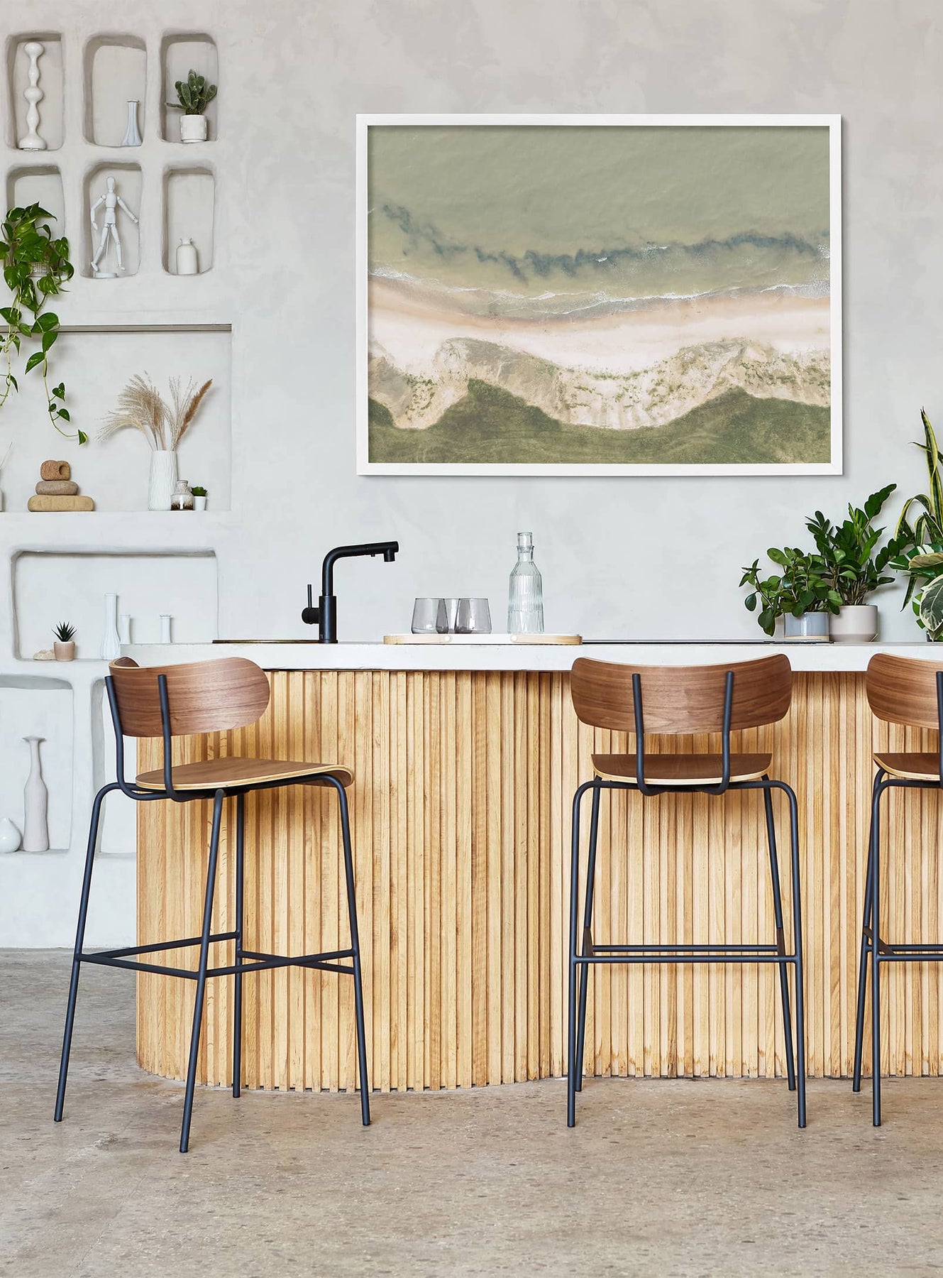 Le tabouret de bar Bantam de Gus* Modern marie l’élégance du design mid-century à la sobriété du style contemporain. Son allure raffinée, ponctuée d’une touche sculpturale, en fait une pièce qui attire le regard tout en invitant naturellement à s’asseoir et à profiter de l’instant.