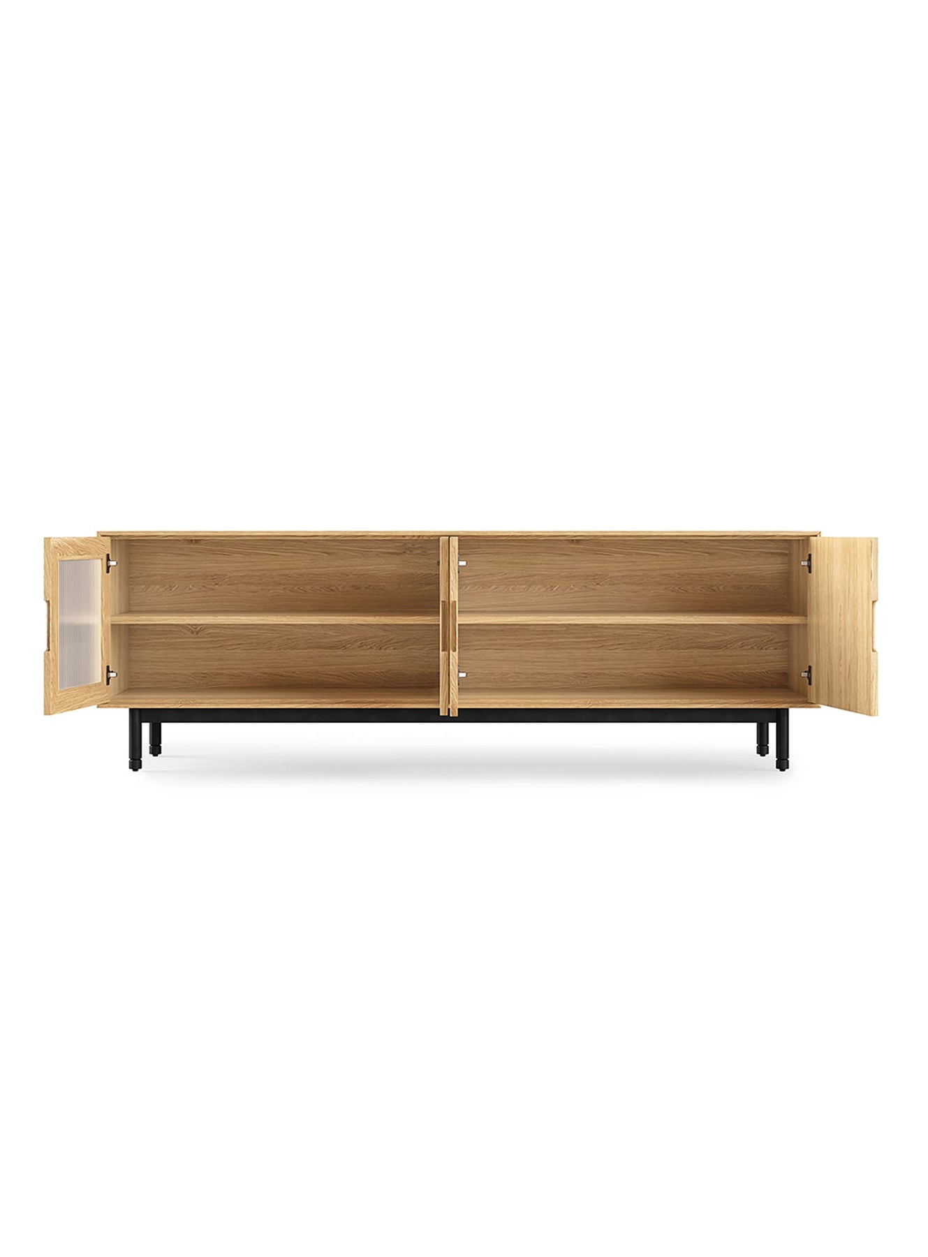 Les portes en verre cannelé du buffet Munro permettent d'admirer le contenu à l'intérieur tout en créant un effet esthétique élégant. De plus, elles conservent un air de mystère, ajoutant ainsi une dimension intrigante à ce meuble.