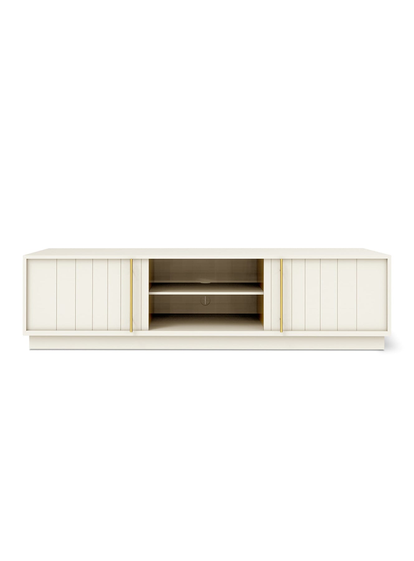 Meuble TV Elora Gus* Modern, finition satinée et poignées en laiton élégantes. pearl