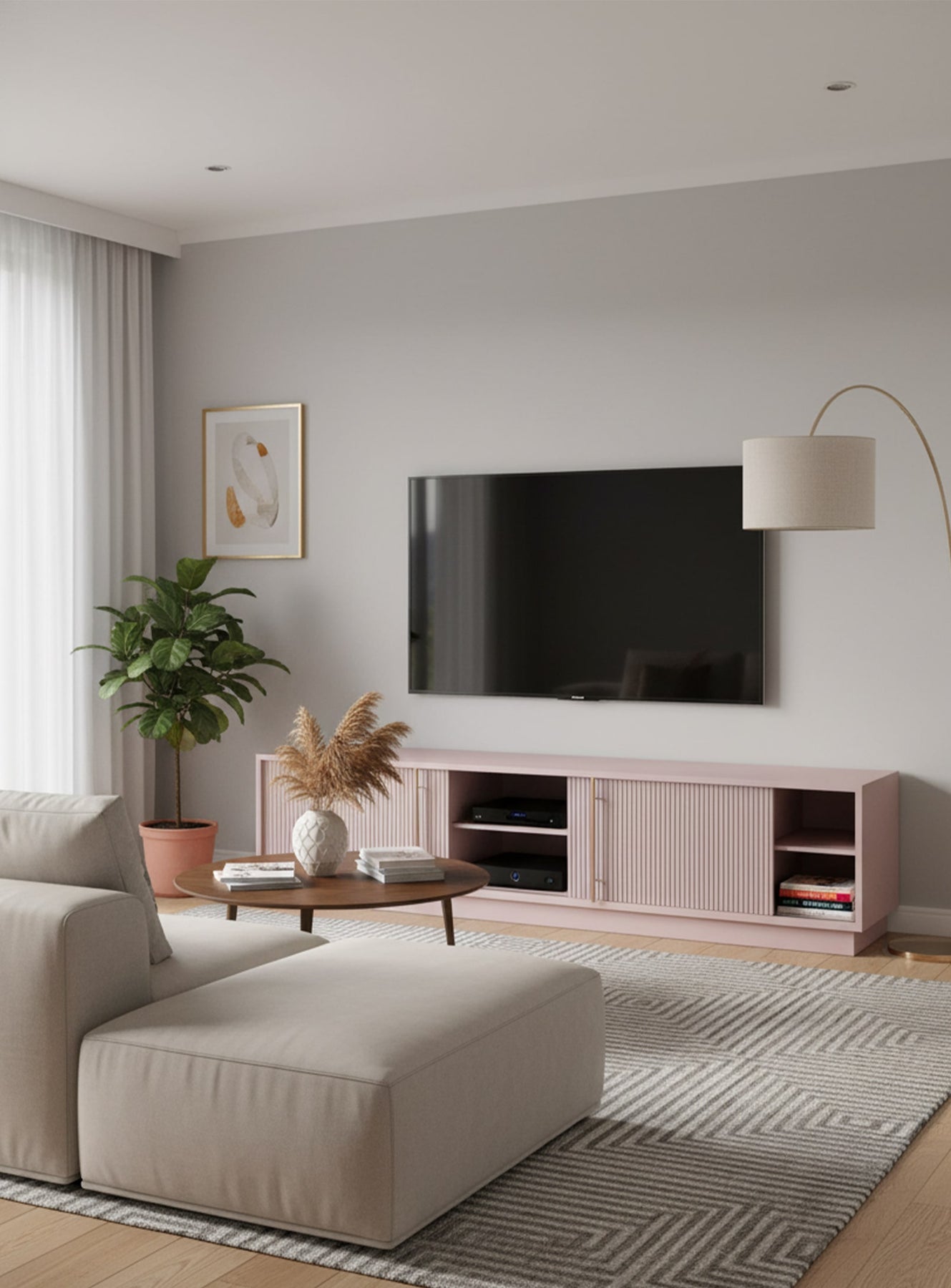 Meuble TV Elora Gus* Modern, rangement spacieux avec gestion discrète des câbles. chiffon