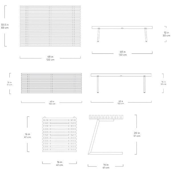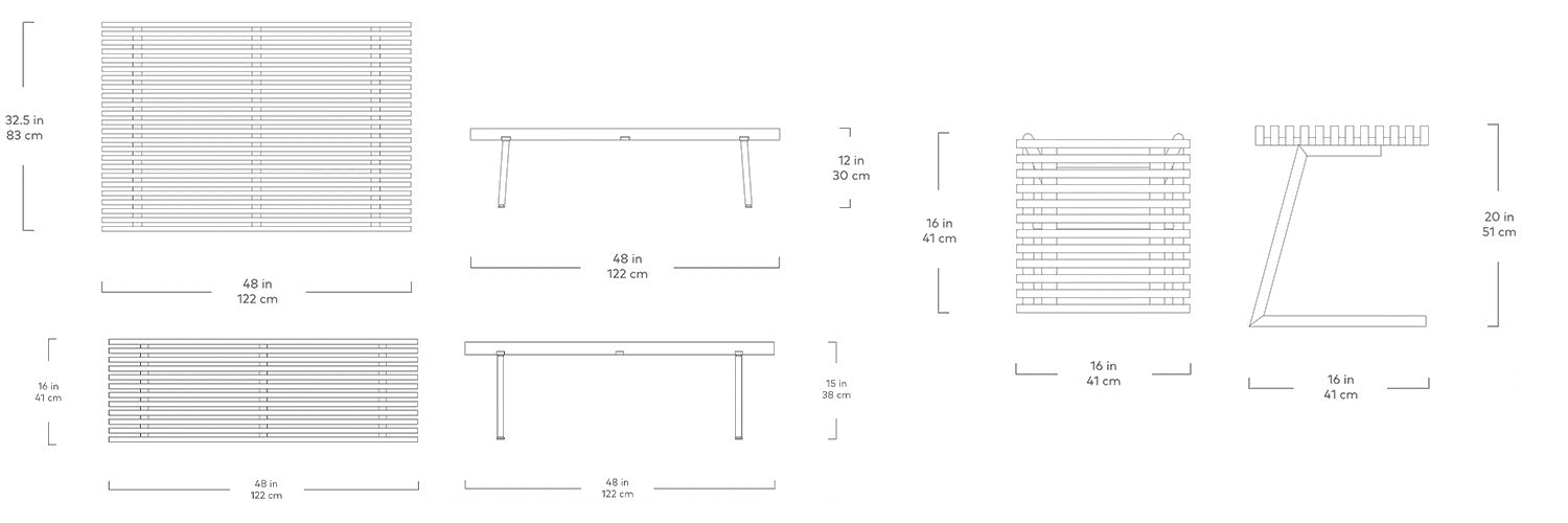 Transit, banc, table à café et table d'appoint en bois et acier, par Gus* Modern, dimensions Transit, banc, table à café et table d'appoint en bois et acier, par Gus* Modern, dimensions