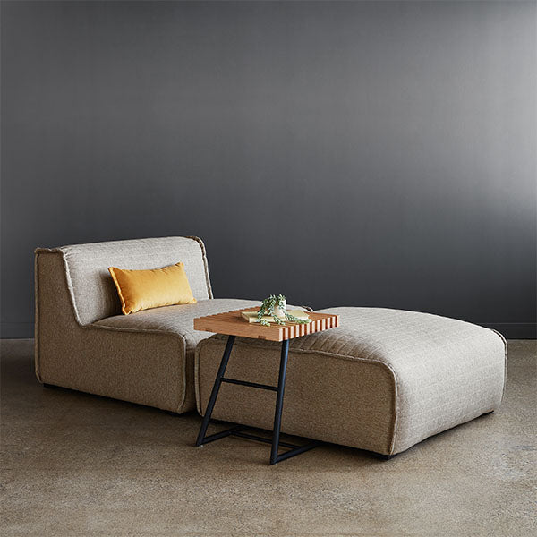 La collection modulaire Nexus de Gus* Modern se compose de trois éléments de siège (fauteuil sans bras, coin et ottoman) qui peuvent être combinés de multiples façons pour créer un sofa ou un sectionnel sur mesure pour votre espace. Avec sa silhouette basse et ses détails épais, Nexus est un équilibre entre un minimalisme épuré et une ambiance bohème décontractée.