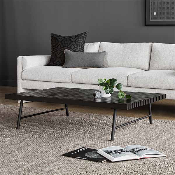 Table à café Transit Gus* Modern : design bas, large et épuré. frene noir