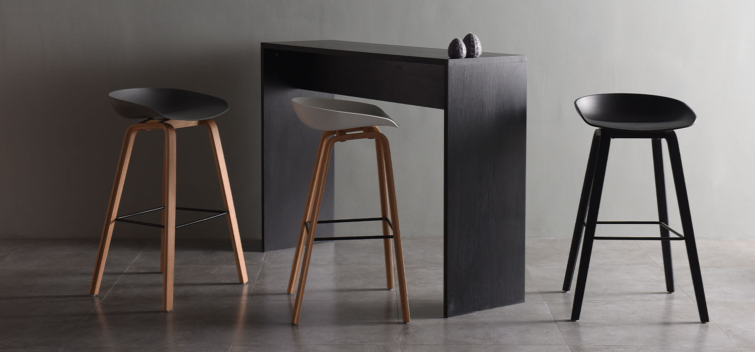 Le tabouret de comptoir « About A Stool 32 » avec son dossier incurvé et ses pieds en bois longs et élégants jouit d'une présence visuelle simple mais forte qui en fait un tabouret idéal dans un environnement public Le tabouret de comptoir « About A Stool 32 » avec son dossier incurvé et ses pieds en bois longs et élégants jouit d'une présence visuelle simple mais forte qui en fait un tabouret idéal dans un environnement public
