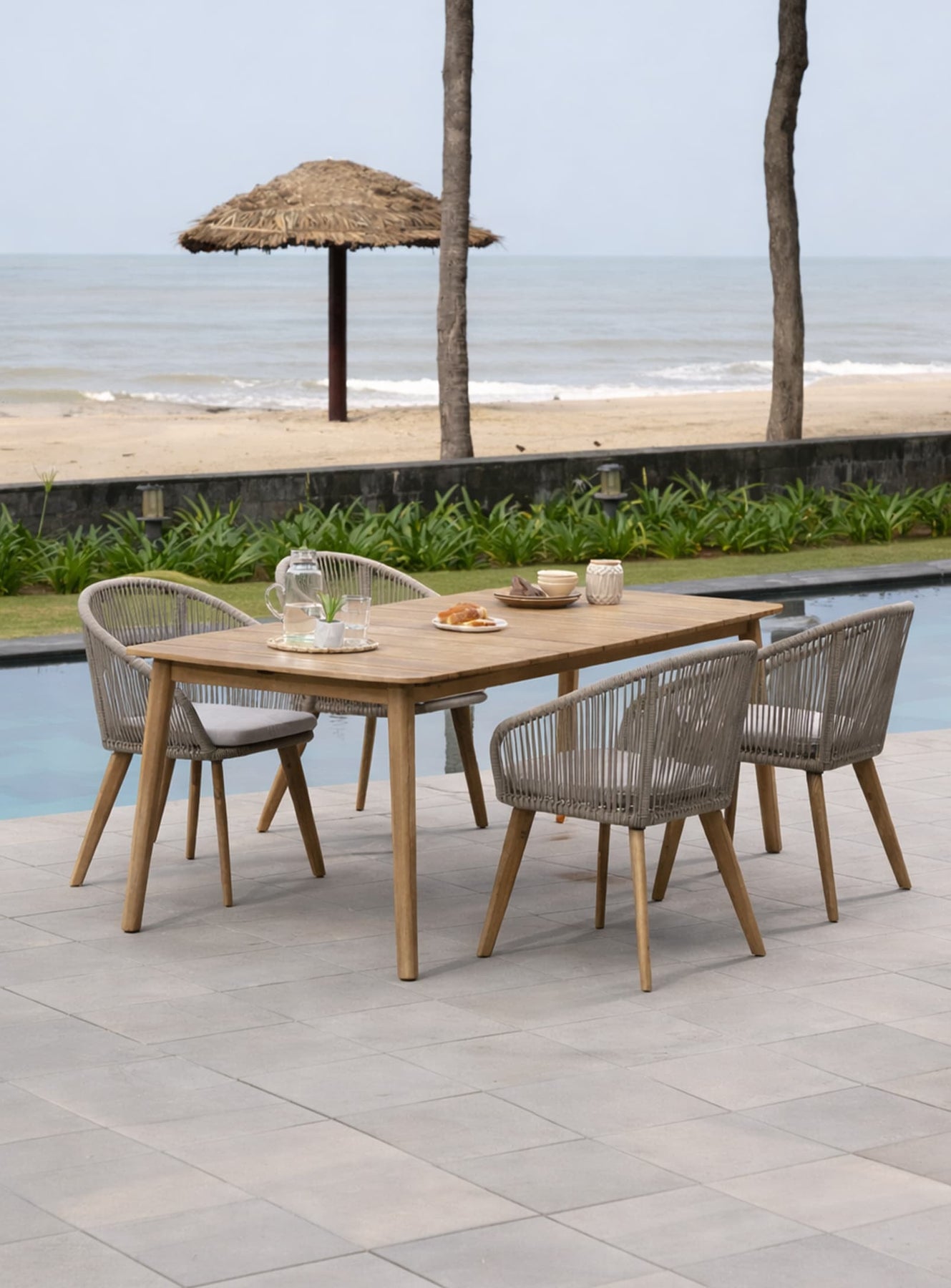 Réunir famille et amis autour de cette table devient une expérience inoubliable grâce à sa forme unique aux bords arrondis et ses pieds élégamment courbés. Cette table témoigne d'un style intemporel qui s'intègre harmonieusement dans tout environnement extérieur.