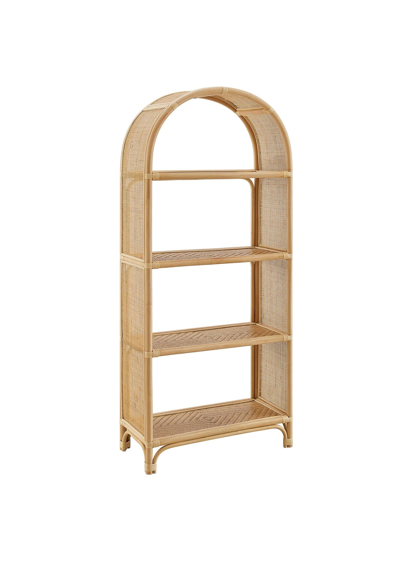 Bibliothèque arquée Celeste : rangement élégant et ambiance apaisante. Naturel.