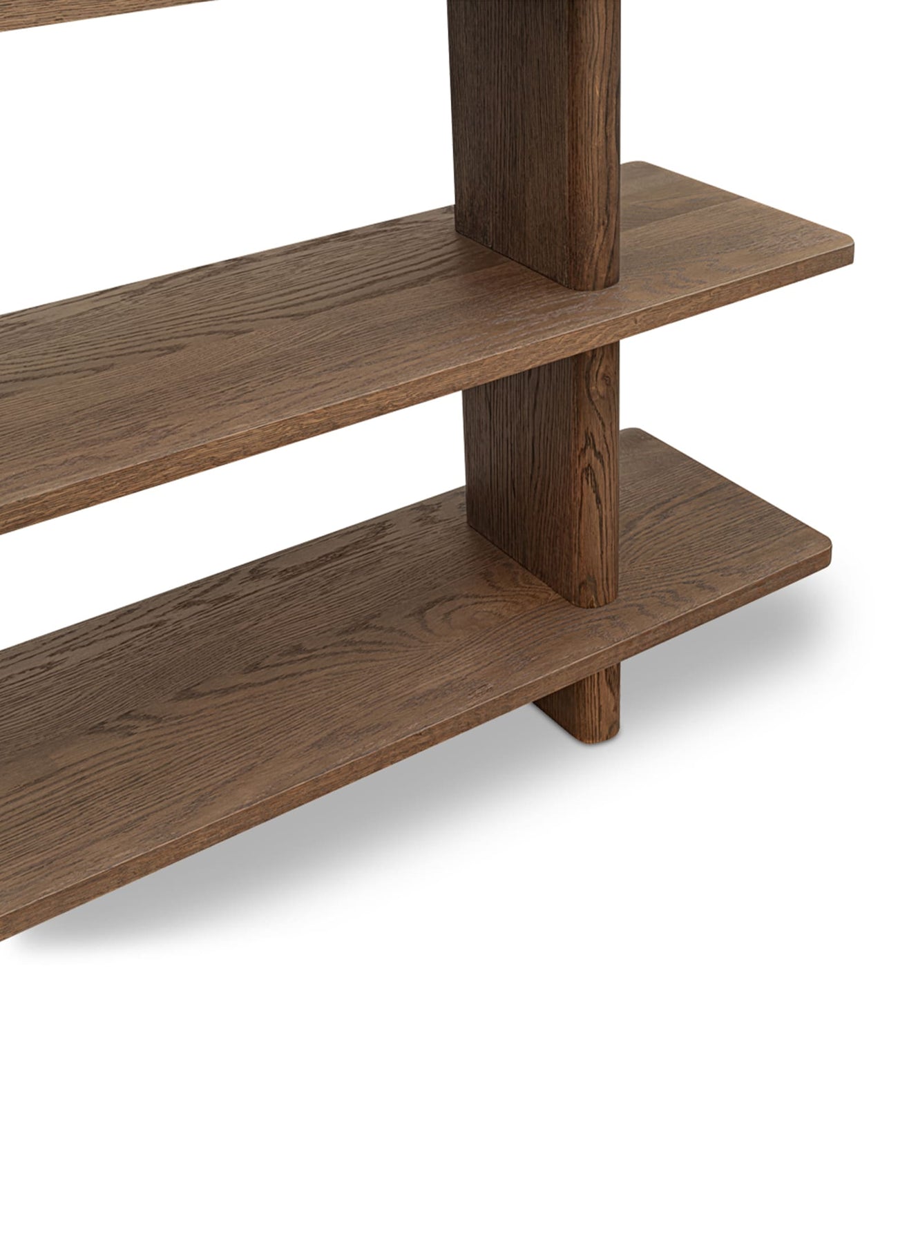 Avec ses cinq étagères, la bibliothèque Casey offre un espace généreux pour exposer des livres, des objets décoratifs ou encore des souvenirs personnels. Elle devient ainsi un élément central de la pièce, alliant rangement et mise en valeur de vos collections.