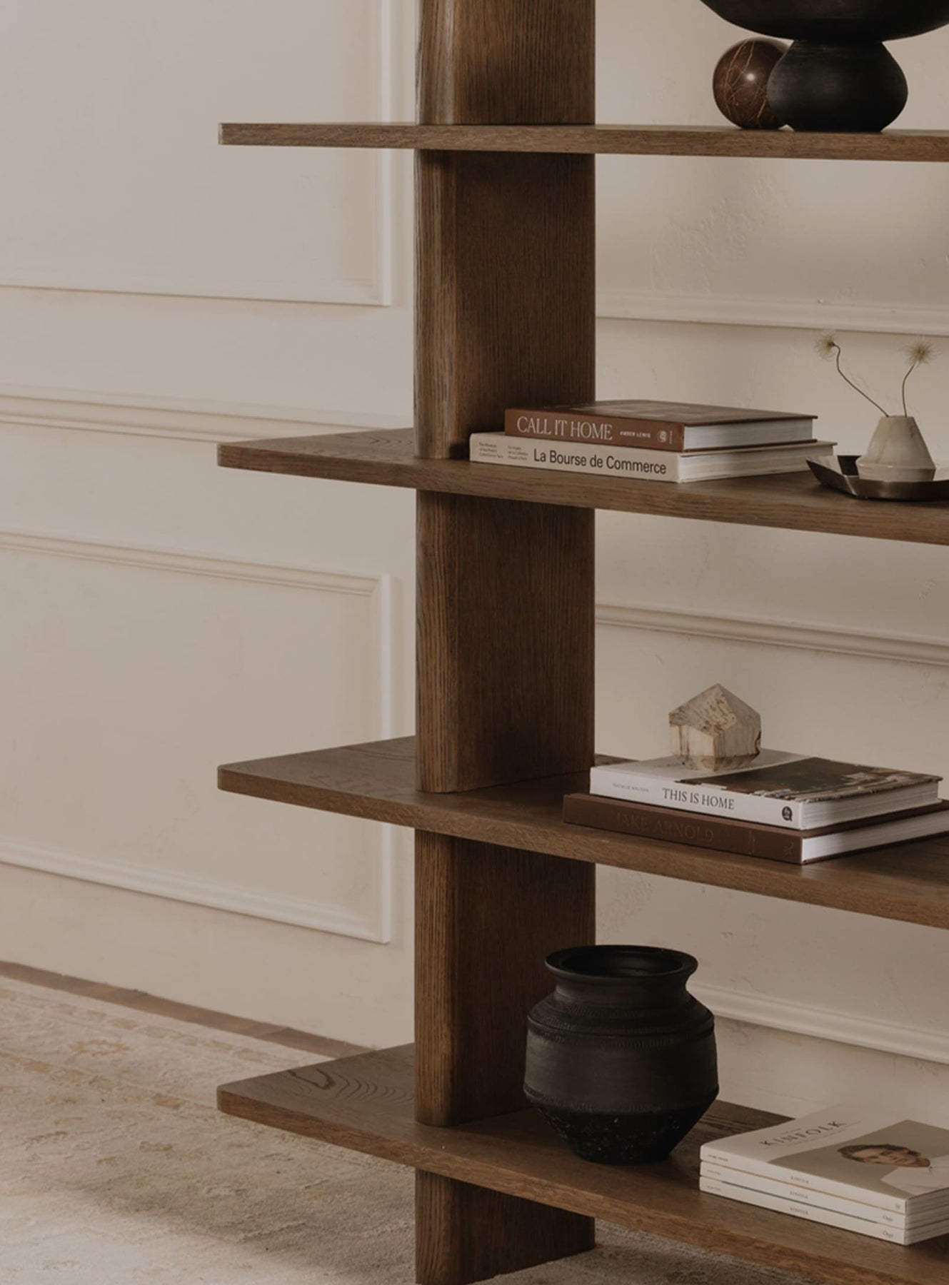 Les détails arrondis apportent une dimension chaleureuse et organique, adoucissant l’aspect graphique de la structure et rendant l’ensemble accueillant et raffiné. Chaque bibliothèque est unique, puisque les veines et les nœuds du bois révèlent des variations naturelles qui témoignent du caractère authentique de la matière. Ces singularités transforment chaque pièce en un objet à la fois utile et chargé de personnalité.