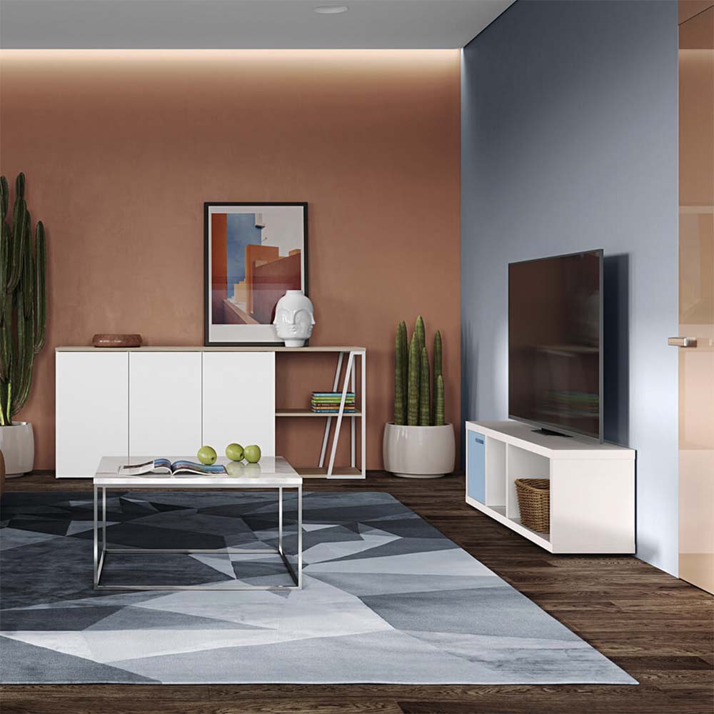 Le meuble TV Berlin est d’une efficace simplicité. Pas de superflu. Seulement de la géométrie au service du rangement. Berlin est un meuble TV faisant partie de la collection Berlin de TemaHome, réunissant plusieurs bibliothèques et une console.