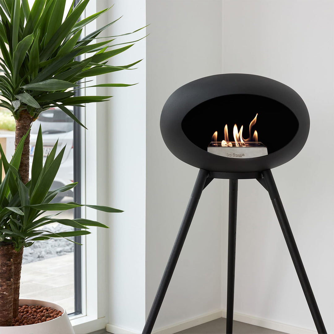 Le Feu High Dome en noir : cheminée autoportante au style raffiné et sobre.