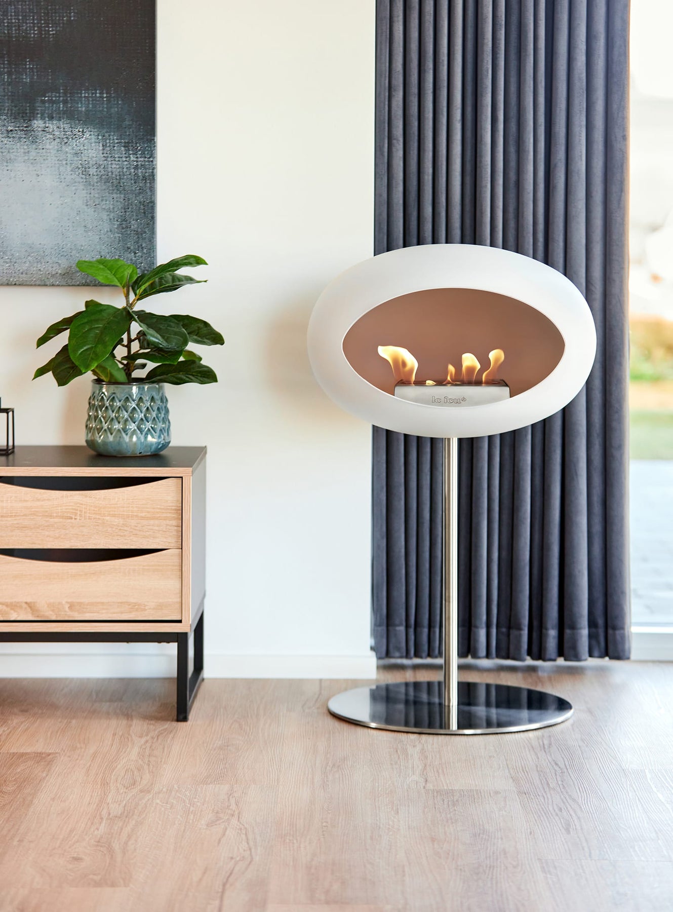 Le Feu High Dome blanc : cheminée autoportante au style raffiné et sobre.