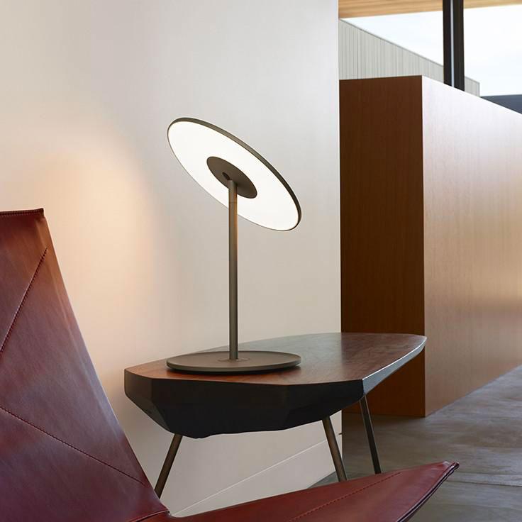 Le point central de Circa est son disque LED à écran plat, qui se déplace gracieusement autour de son axe. Cette mobilité fluide permet à la lampe de prendre une infinité de positions, offrant ainsi une grande flexibilité d’utilisation. Circa fonctionne comme une lampe de travail tout en diffusant une lumière ambiante douce et symétrique, idéale pour s’adapter à divers environnements, qu'il s'agisse d'un espace de travail ou d'une pièce de vie.