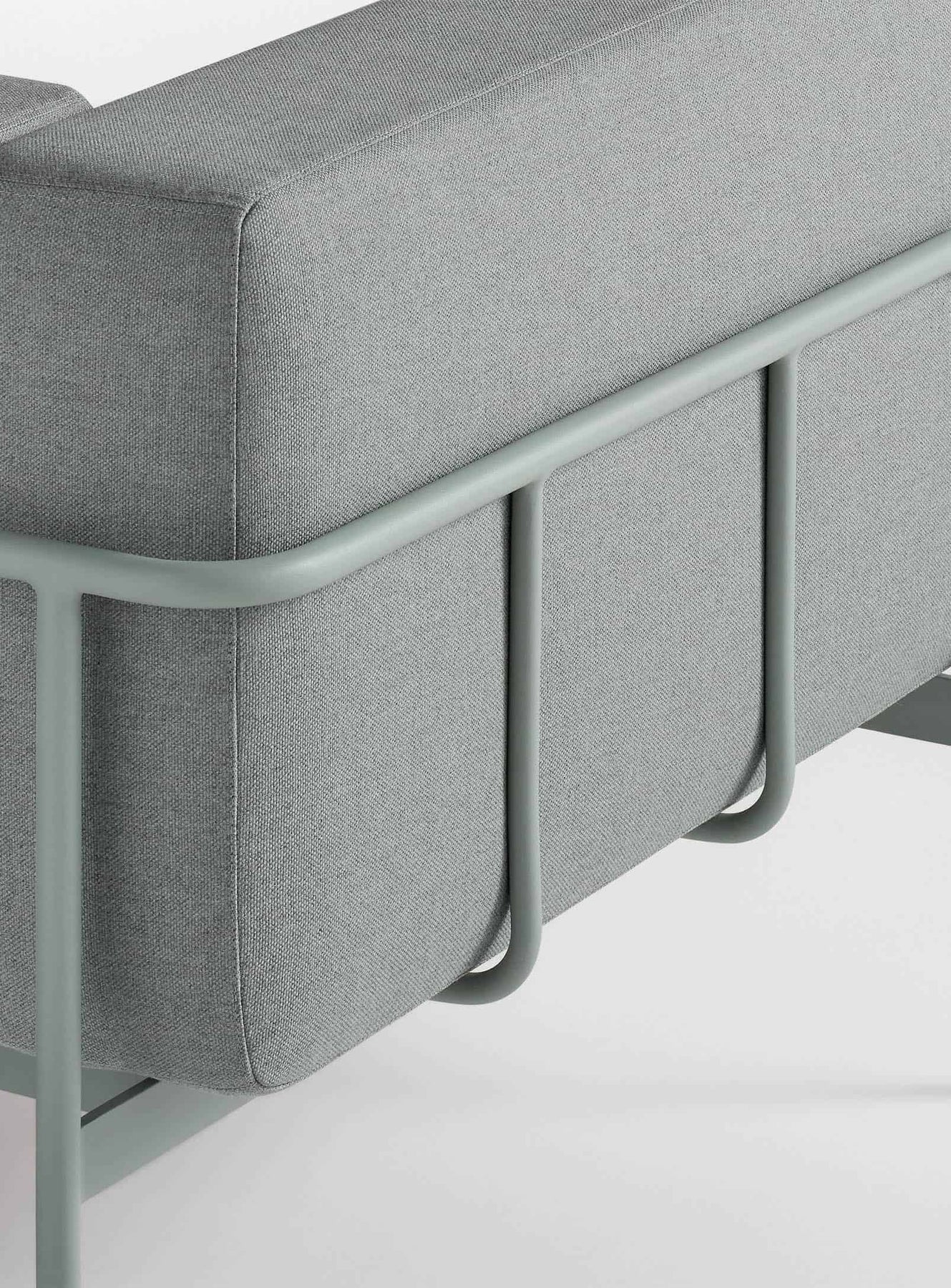 Le cadre tubulaire en aluminium thermolaqué n'est pas simplement fonctionnel : il devient un élément de design à part entière. Sur les côtés du sofa, une série de barreaux arrondis forme un détail sculptural discret qui rappelle les codes du mobilier de créateur. Légère, indéformable et naturellement résistante à la corrosion, la structure en aluminium est conçue pour traverser les saisons sans fléchir — que ce soit face aux pluies hivernales ou à la chaleur estivale.