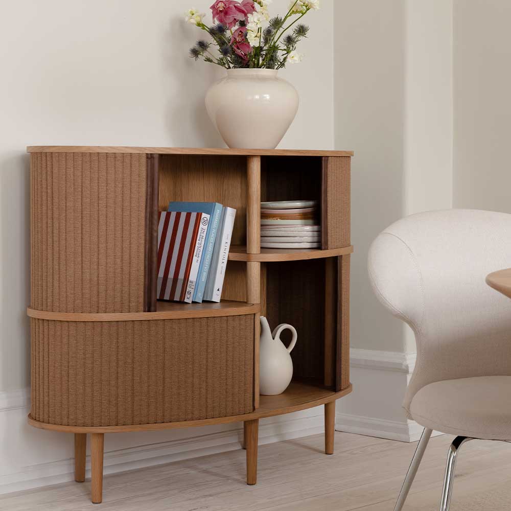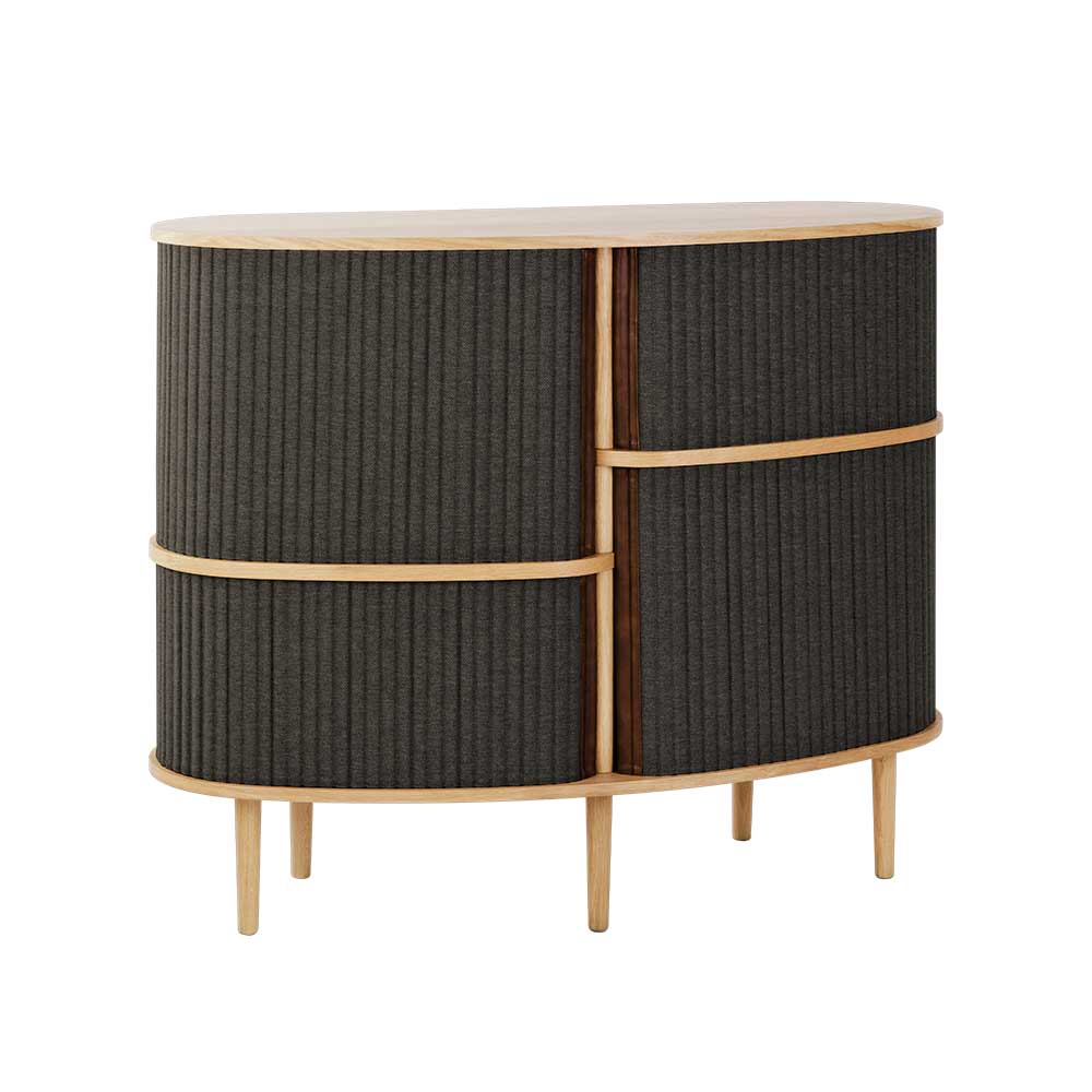 Umage Audacious Highboard, cabinet haut pour le rangement dans la salle à manger ou le salon, en bois et tissu, ombre, chêne
