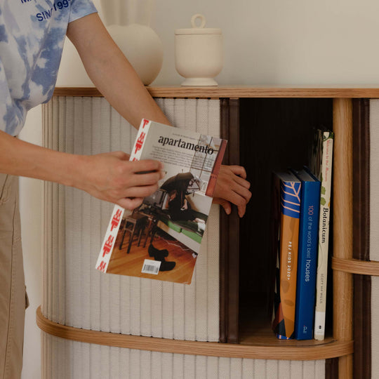 "Les courbes organiques de la collection Audacious adoucissent la maison, créant une atmosphère chaleureuse et accueillante, et rompent avec l'idée que les armoires et les buffets sont des cubes solides et carrés." - Jonas Søndergaard, designer chez Umage.