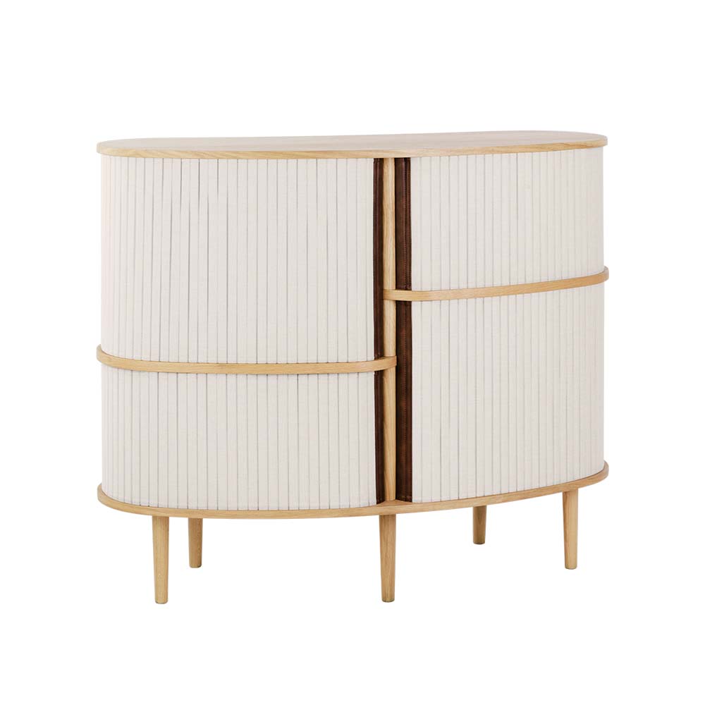 Umage Audacious Highboard, cabinet haut pour le rangement dans la salle à manger ou le salon, en bois et tissu, sable blanc, chêne