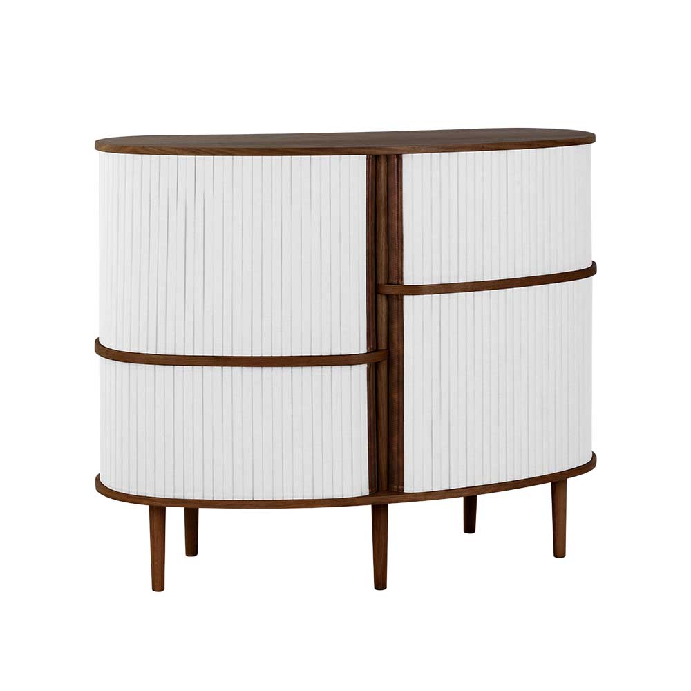 Umage Audacious Highboard, cabinet haut pour le rangement dans la salle à manger ou le salon, en bois et tissu, sable blanc, chêne foncé