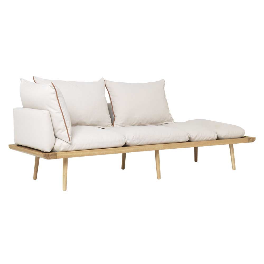 Umage Lounge Around, sofa 3 places au style scandinave, en bois et tissu, sable blanc, chêne