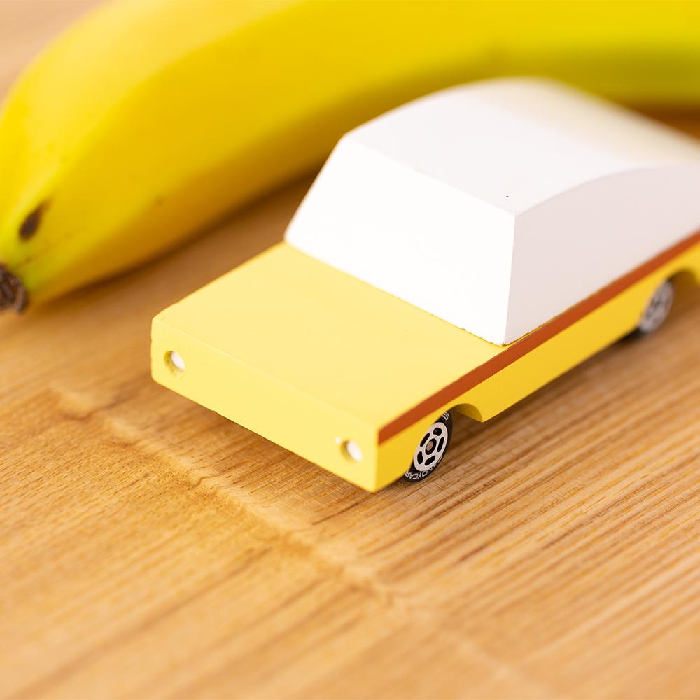 En voyant cette voiture en bois si joyeuse et lumineuse, impossible de ne pas avoir envie d'un gâteau à la banane tout frais sorti du four, ou peut-être même d'un succulent banana split, débordant de glace à la vanille, de bananes fraîches et de généreuses garnitures !