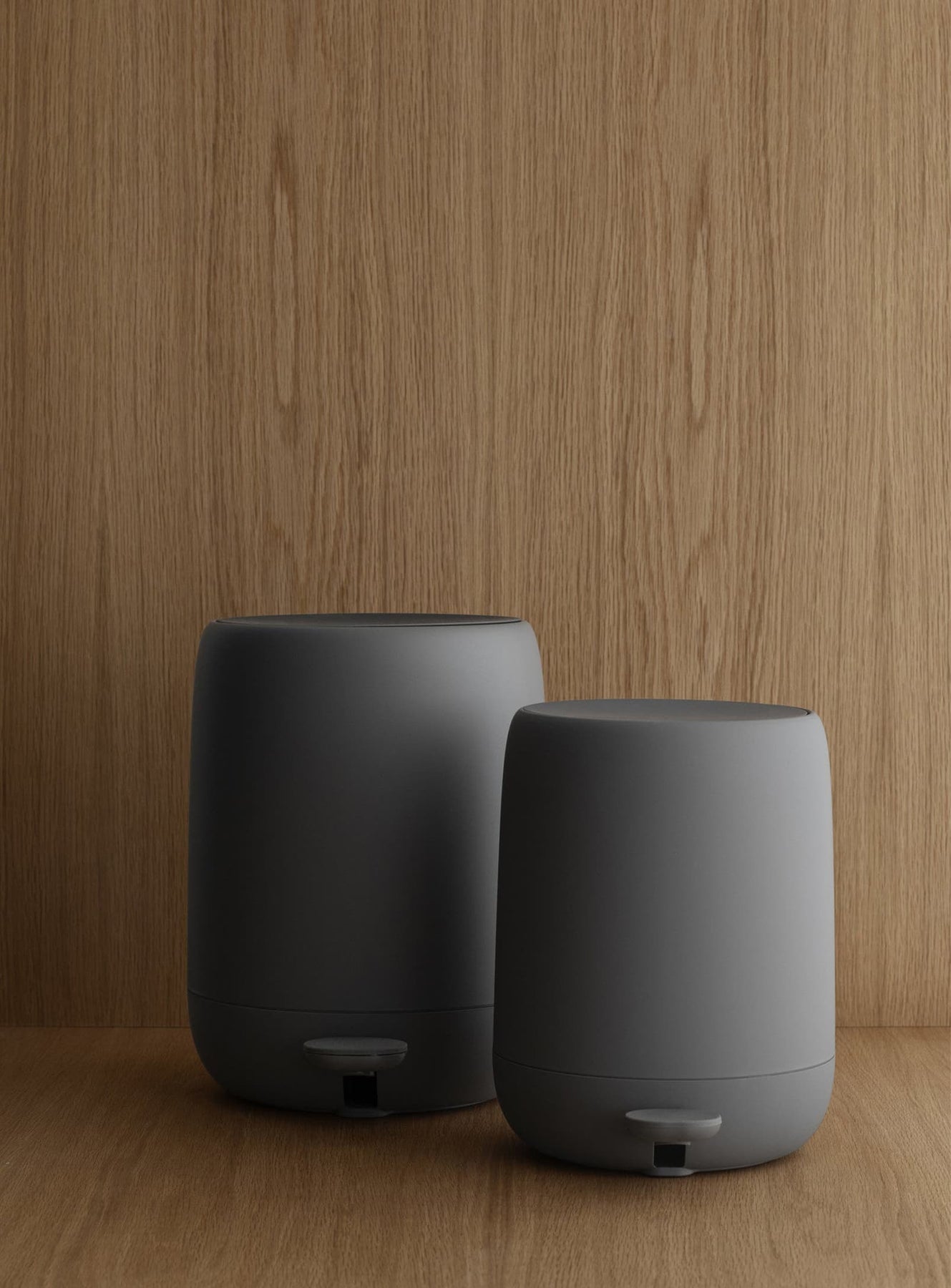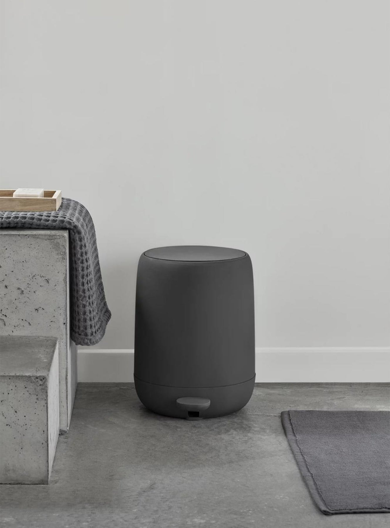SONO de blomus : poubelle douce au toucher et ultra fonctionnelle. Charbon.