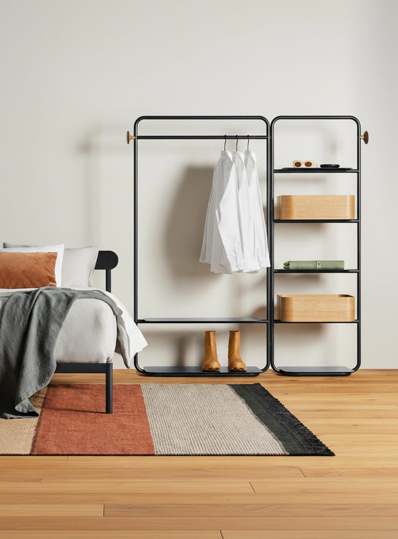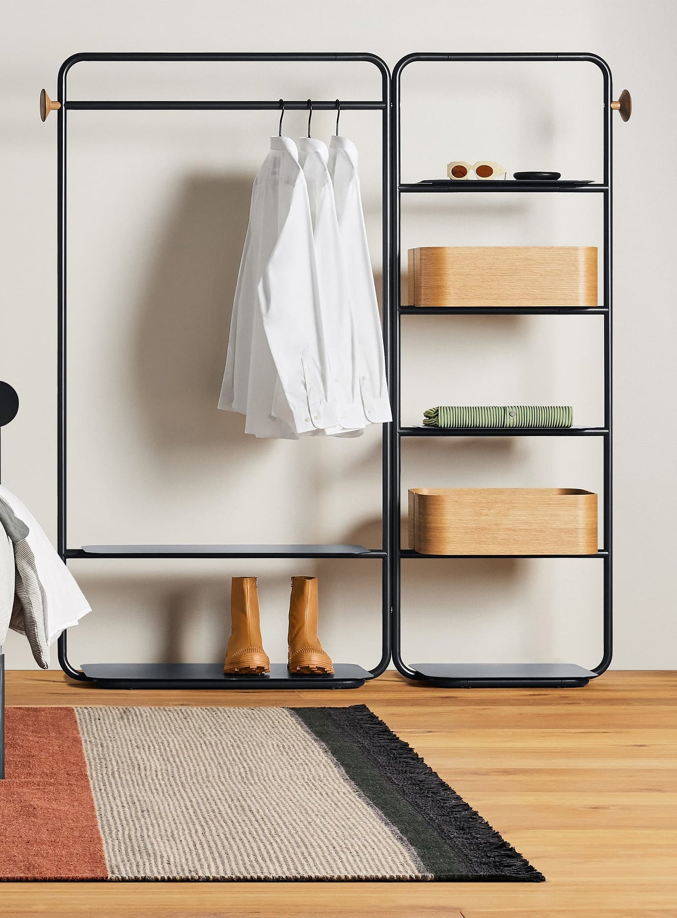Garde-robe design Blu Dot : rangement stylé et silhouette légère. noir
