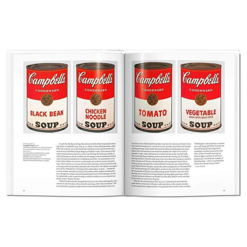 The title of Taschen's book is enriched by more than 100 images of Warhol's work, presented in high-quality reproductions that retain all the vibrancy of the original works. These images allow readers to explore the diversity of Warhol's artistic palette, from his famous celebrity portraits to his iconic series, such as Campbell's soup cans.