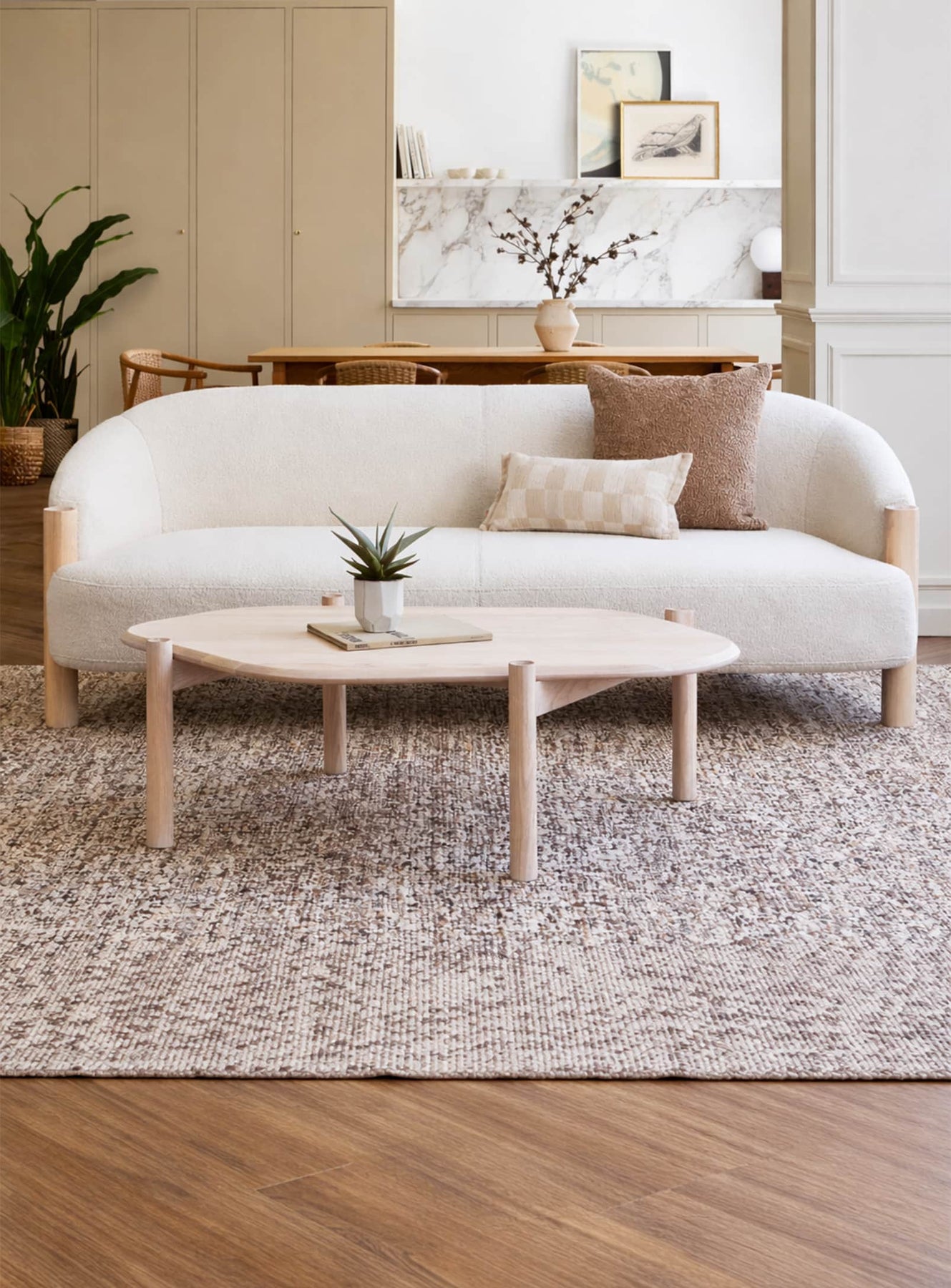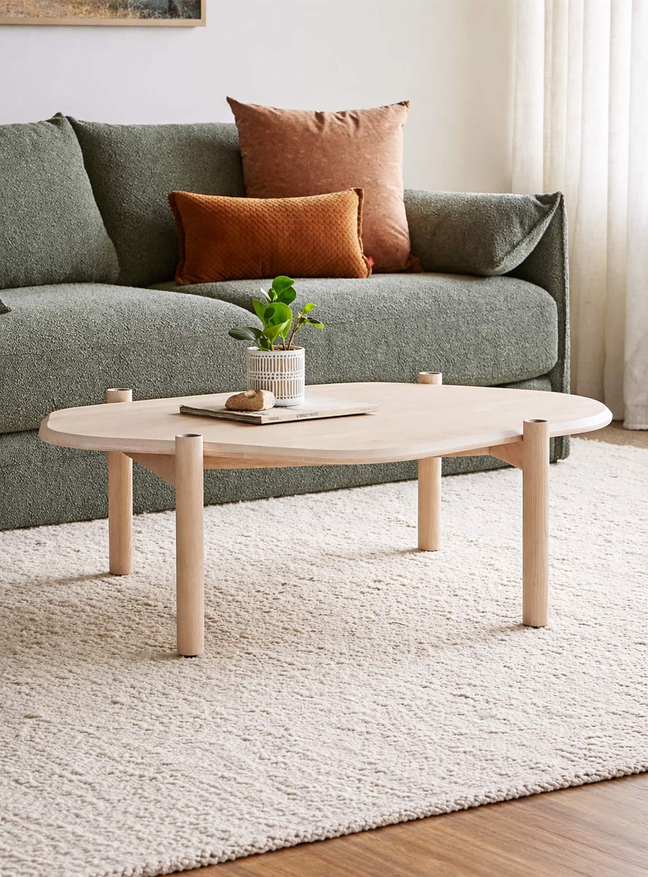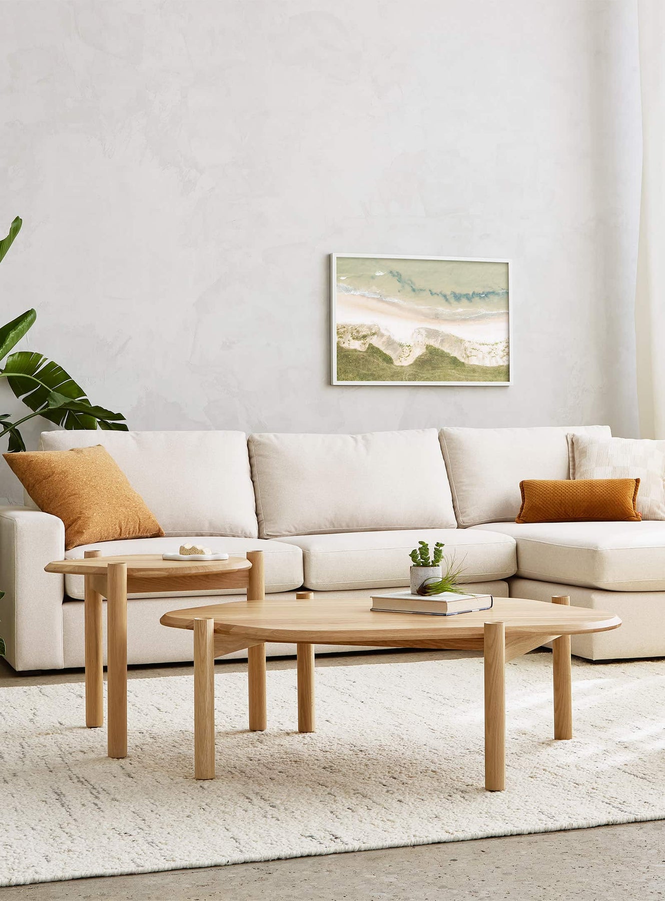 Their asymmetrical design creates a striking aesthetic contrast, while blending harmoniously into contemporary living rooms. This asymmetry offers an interesting visual play, adding depth and dynamism to your space. When paired together, these two tables form an aesthetic ensemble that is both eye-catching and functional. Their juxtaposition creates a fluid and organic arrangement, perfect for adding design accents to any modern living room.