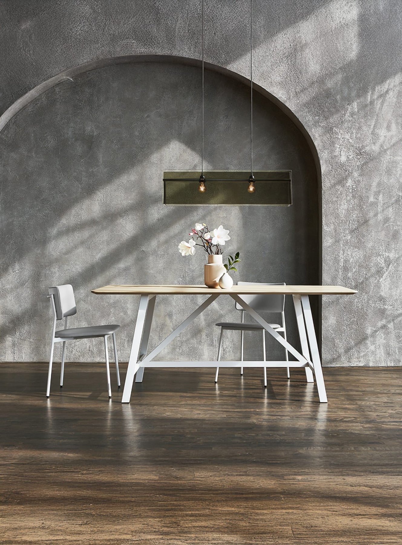 A chair without a dining table is like a summer without sunshine. Gus* has always had this awareness of making furniture that goes together. That's why every chair will find the perfect table to make your dining room, one of the splabkle rooms in your home.