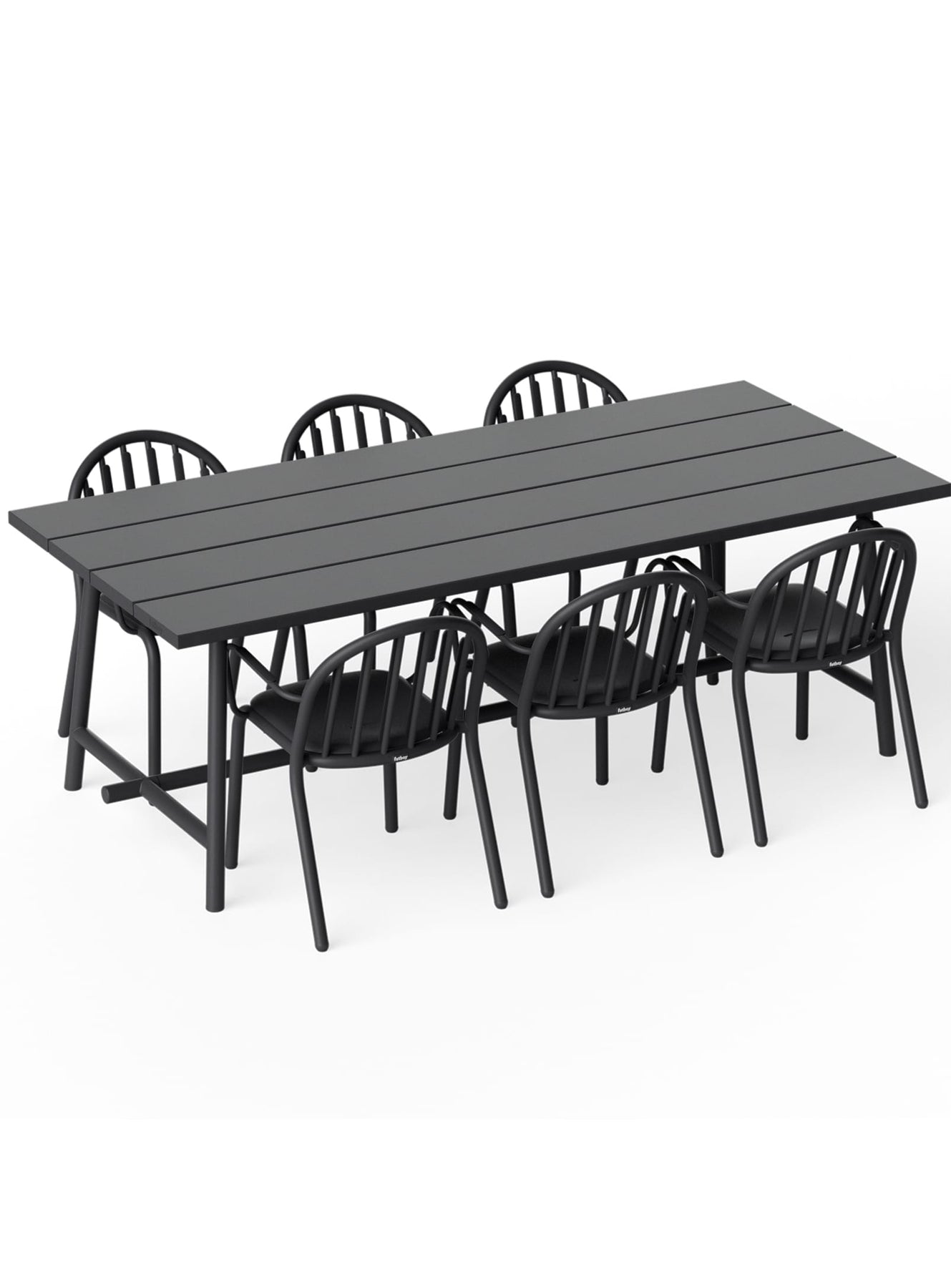 Create a truly convivial outdoor experience with the Fred's 6-seater outdoor dining set, a successful blend of contemporary design and smart functionality. Designed by Fatboy, this set includes a spacious table and six matching dining chairs, all made from lightweight yet exceptionally durable aluminum, ideal for long-lasting outdoor use.