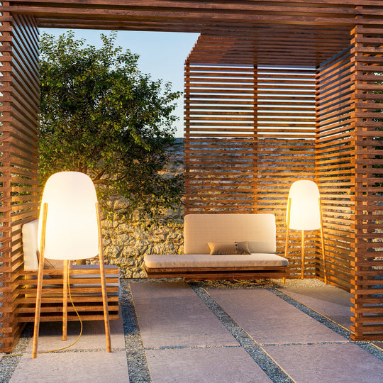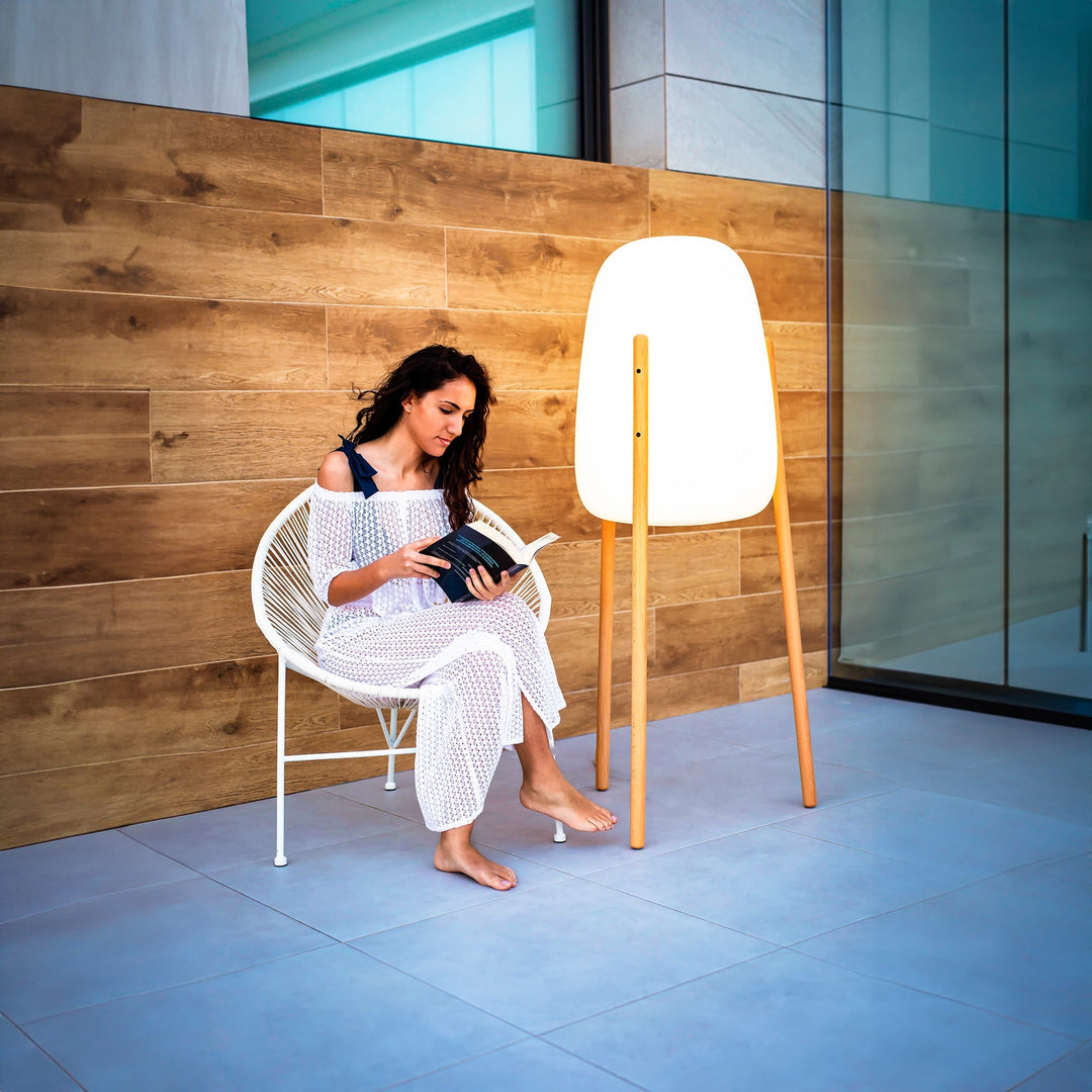 Meet Rocket, a one-of-a-kind floor lamp made by Newgarden. This lamp is designed to bring a touch of elegance to all indoor and outdoor spaces. With its wooden legs, Rocket is not only functional, but also aesthetically pleasing, making it an essential element of your decoration.