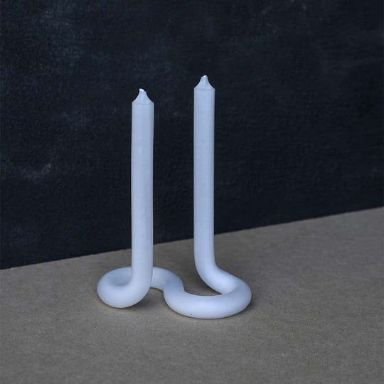 Twist candles explore the flexibility of wax in an innovative way. Unlike conventional candles which are typically straight and require a separate base, designer Lex Pott reimagined this relationship by merging the base and candle into a single material form.