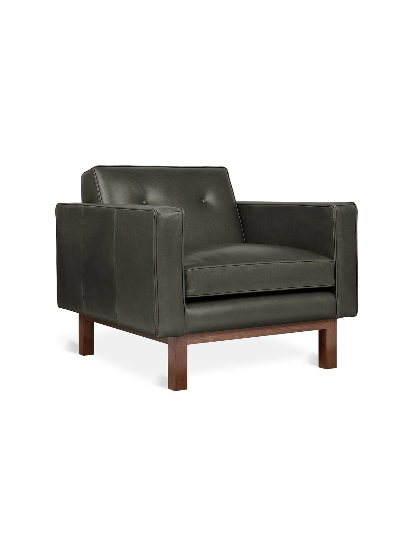 Le fauteuil Embassy de Gus* Modern : dossier capitonné et lignes épurées. Cuir Tucson Char