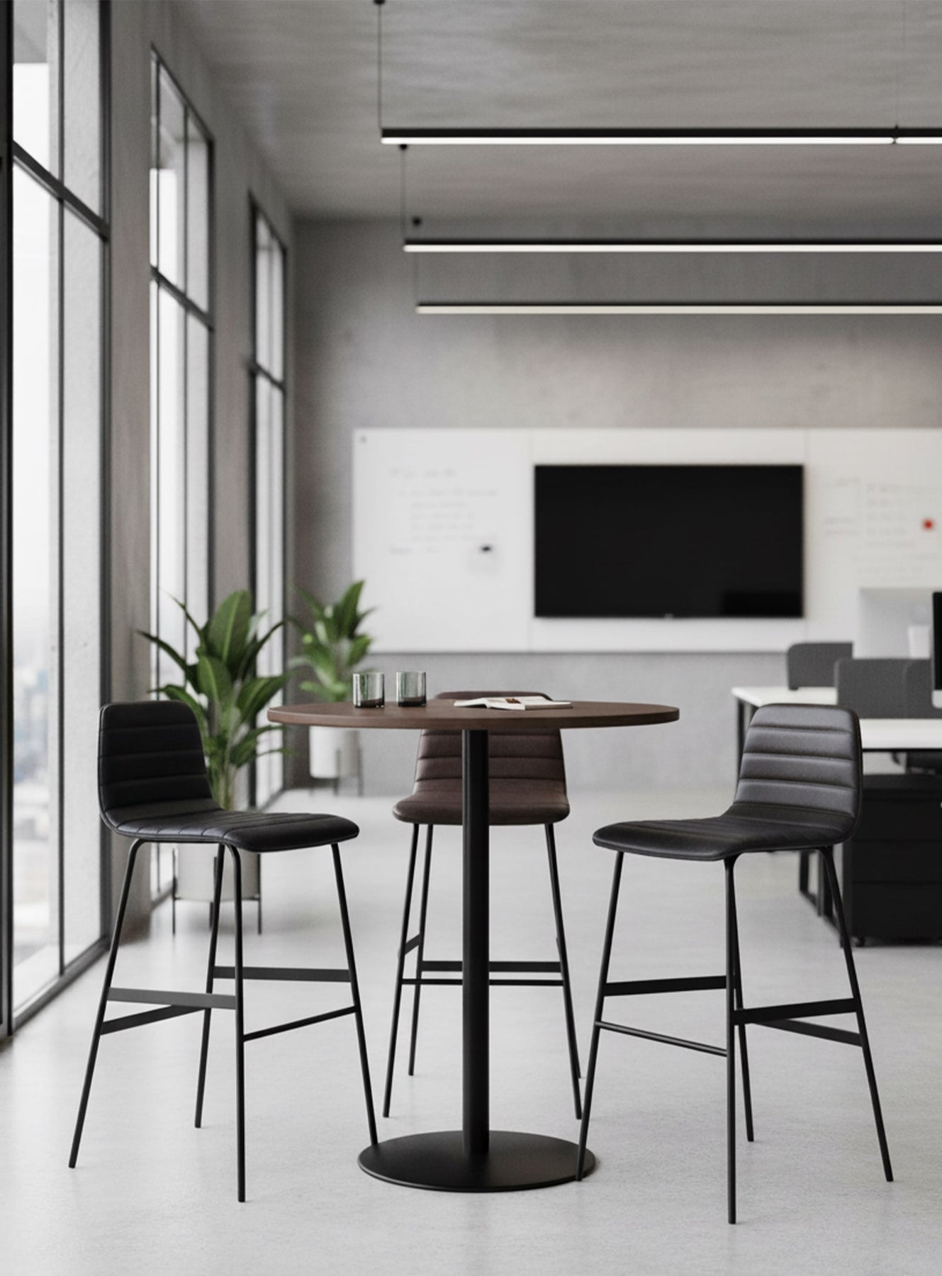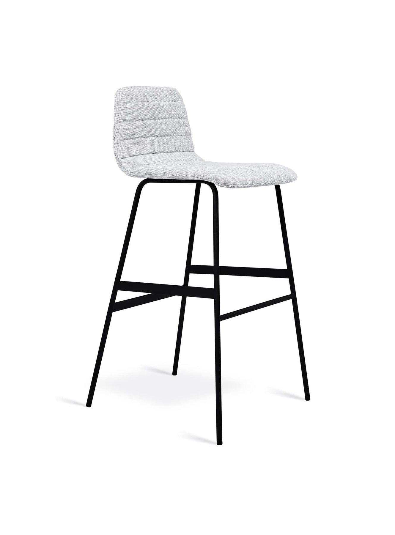 The black steel legs of the Lecture bar stool are powder coated, giving them added durability and strength. They are reinforced with strong flat bar stabilizers, ensuring optimal stability during use. In addition, a simple and ergonomic footrest is integrated for additional comfort.