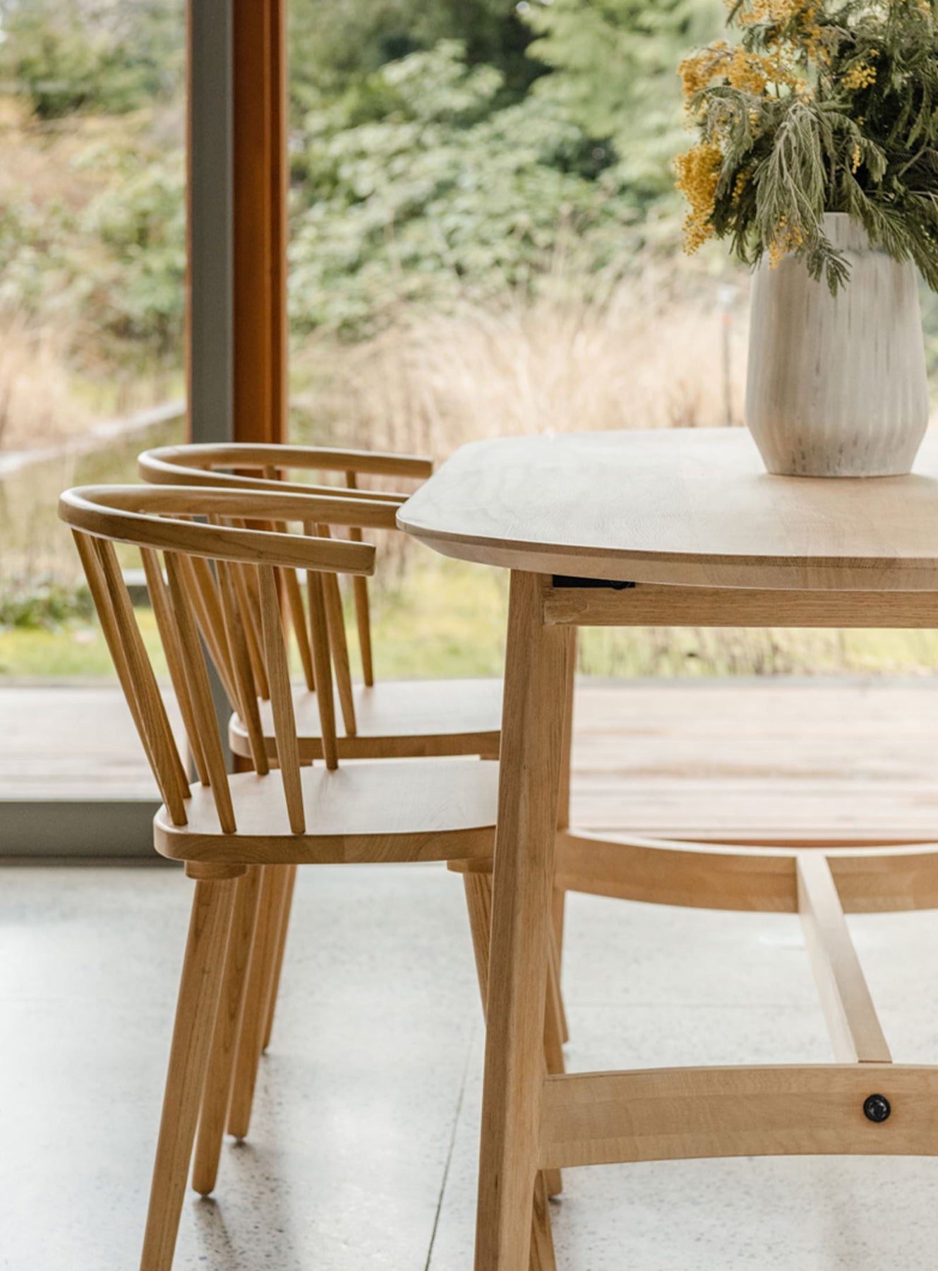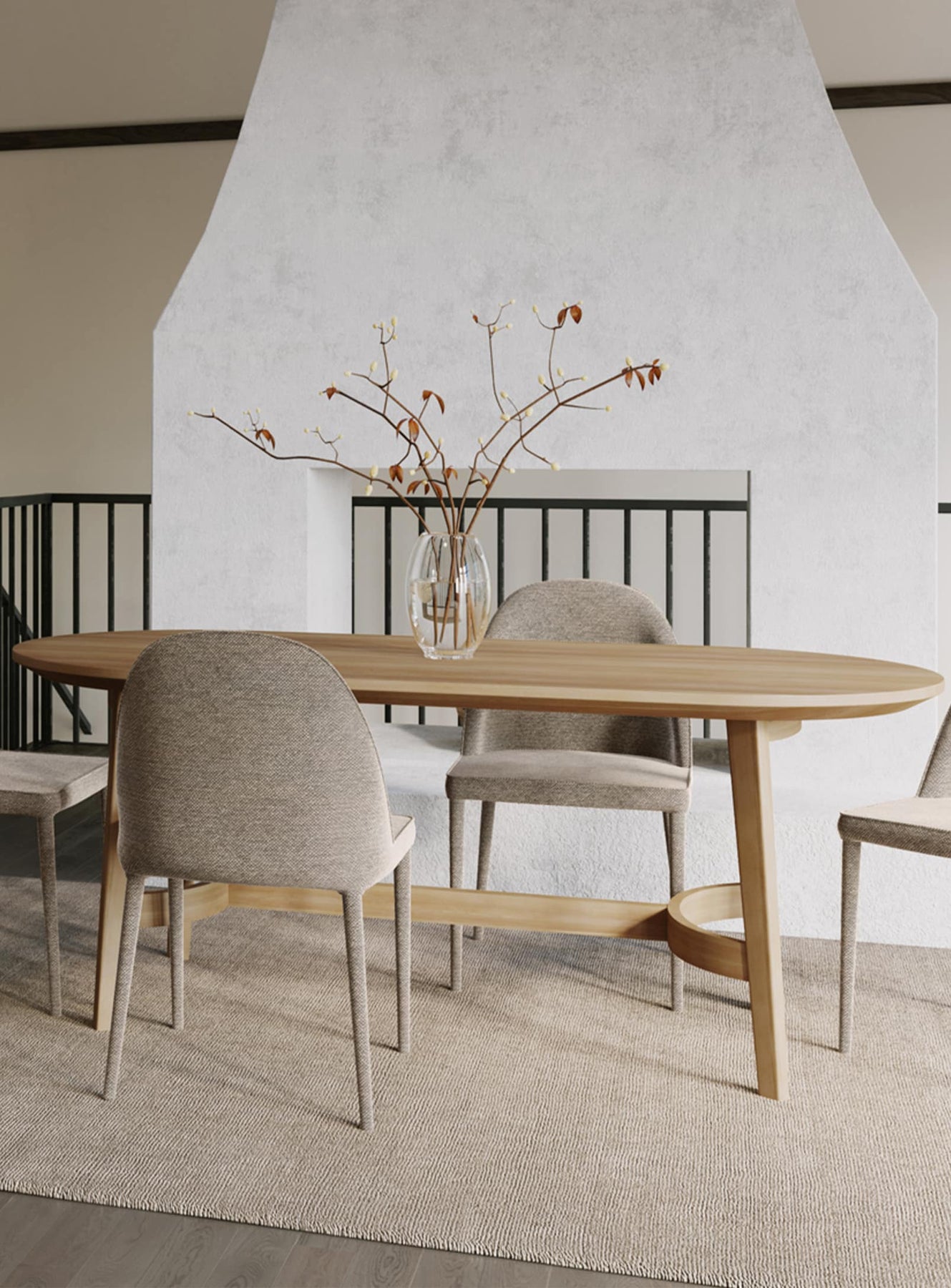 The Trie dining table embodies warmth, adaptability and a constant source of inspiration. It is an exploration of the authentic grains of oak wood, capturing the very essence of nature in its design. With its clean lines, gentle curves and simplistic forms, Trie's elements blend harmoniously to create visual balance and a tangible connection to nature.