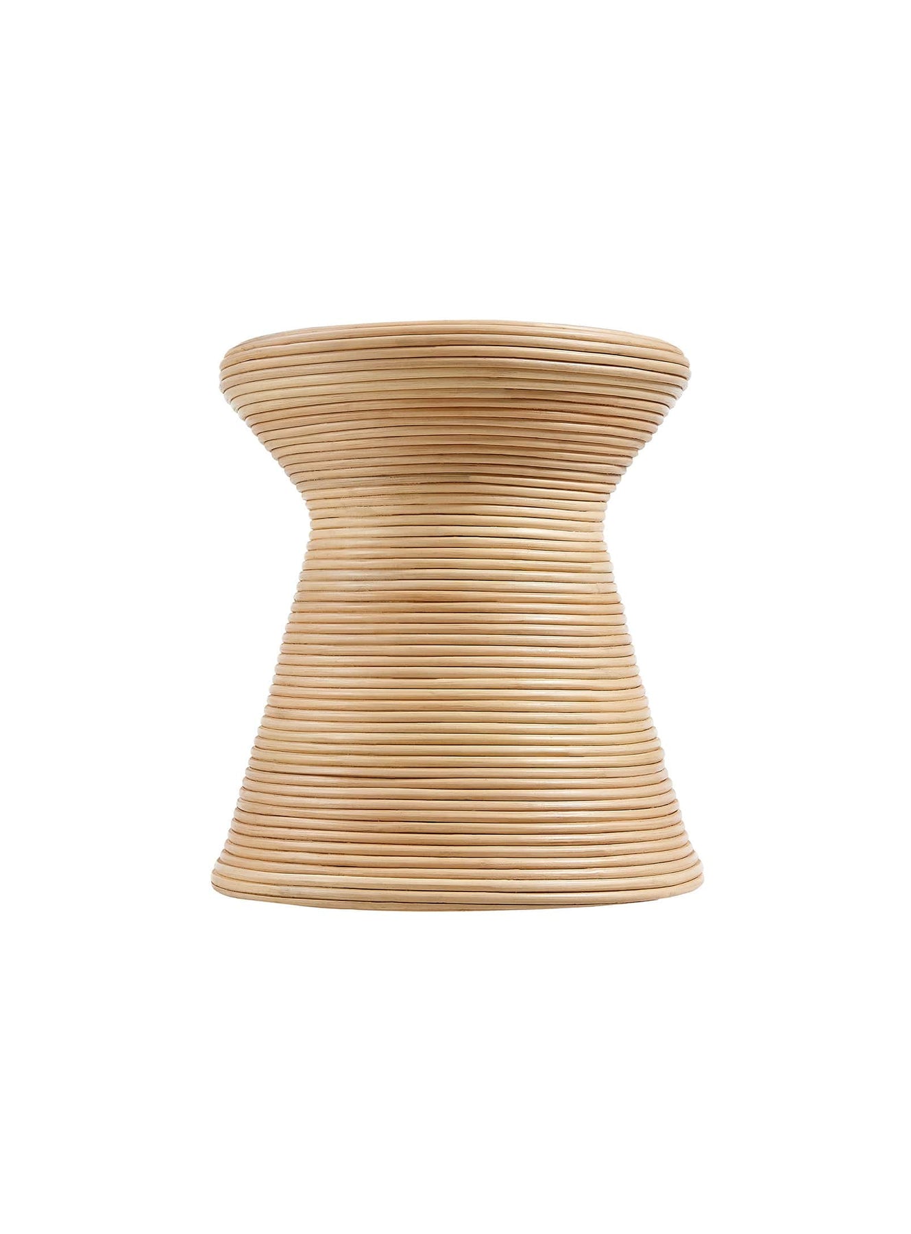 Sculptural and delicately refined, the Tavi round side table captivates with its elegant simplicity and natural charm. Its hourglass-shaped silhouette, openwork and crafted entirely from natural rattan, captures the light and creates a subtle play of shadows that visually enriches the space. Both lightweight and sturdy, it embodies the perfect balance between handcrafted aesthetics and contemporary functionality.