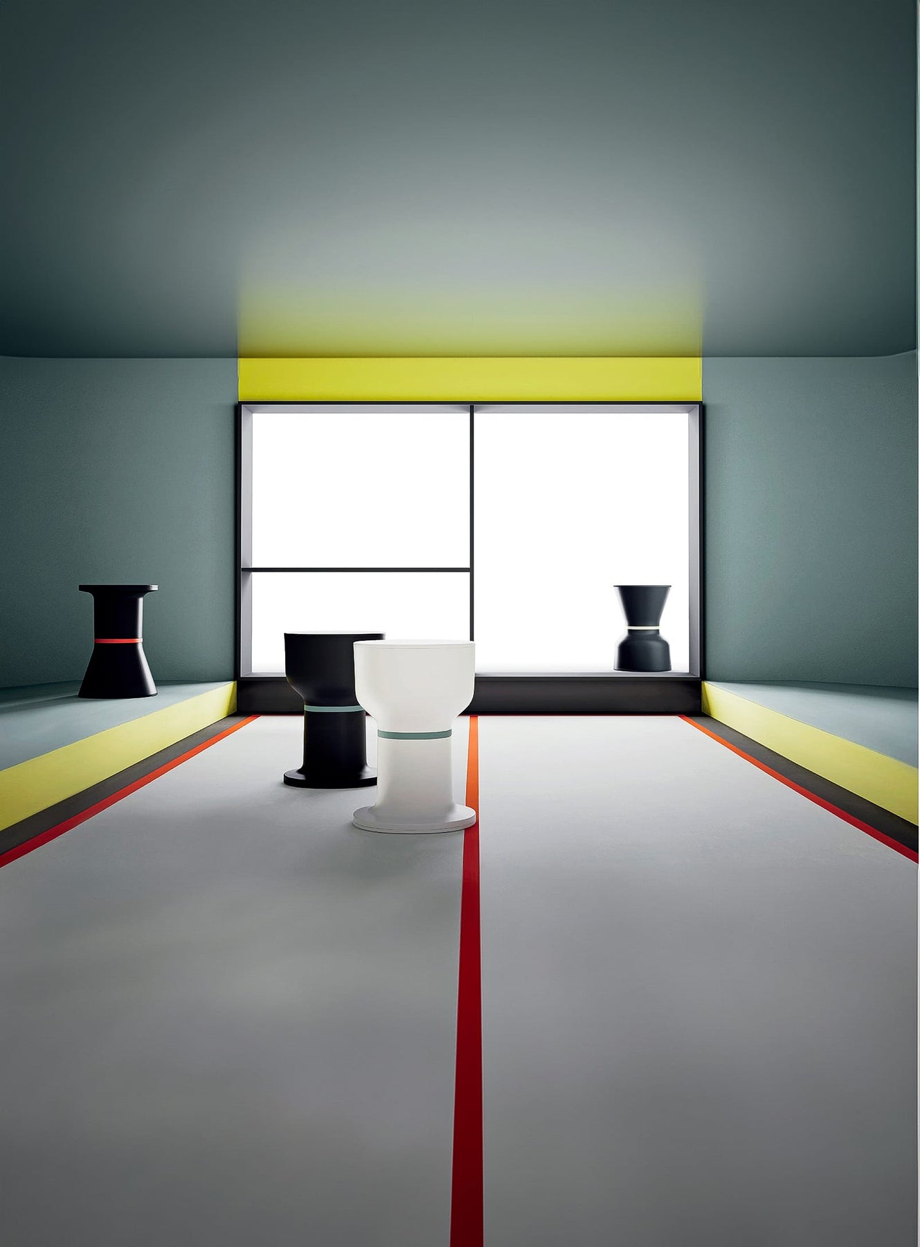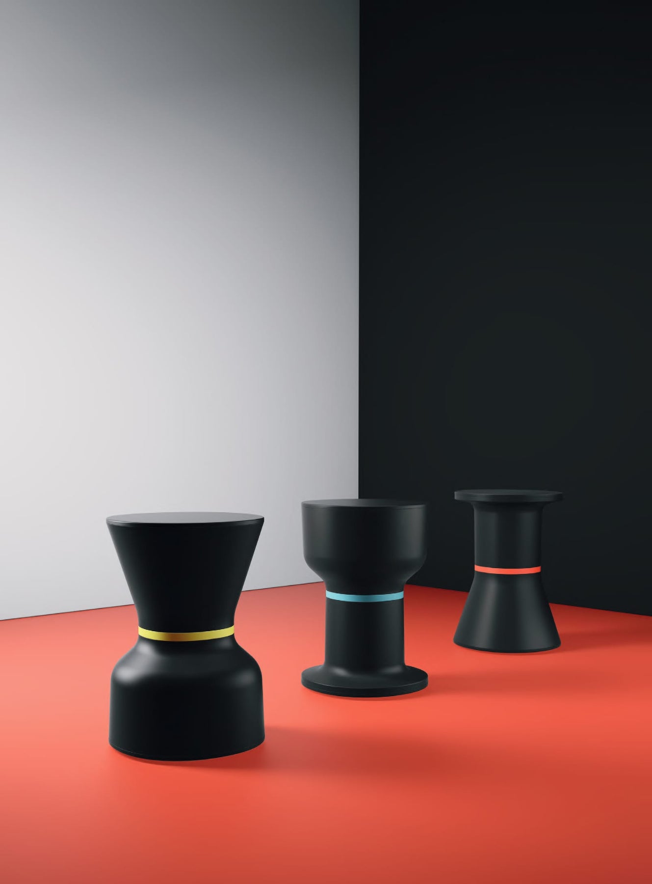 Essential but not simplified volumes, cross-references to known forms, seen and recorded in our memories like archetypes of vases, columns, capitals. These objects are distinguished by an almost indefinite use, and are therefore completely free to suggest different uses reinterpreted from time to time. Place a book next to a bed and it will become a nightstand; a cocktail by a pool will make it an outdoor end table ; inside the house or in a bathroom it could become a stool, while in a restaurant or cafe it could serve as a bag holder.