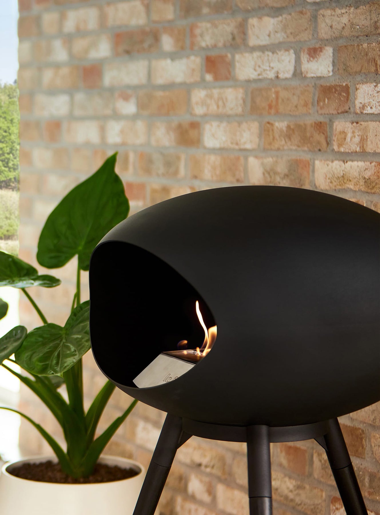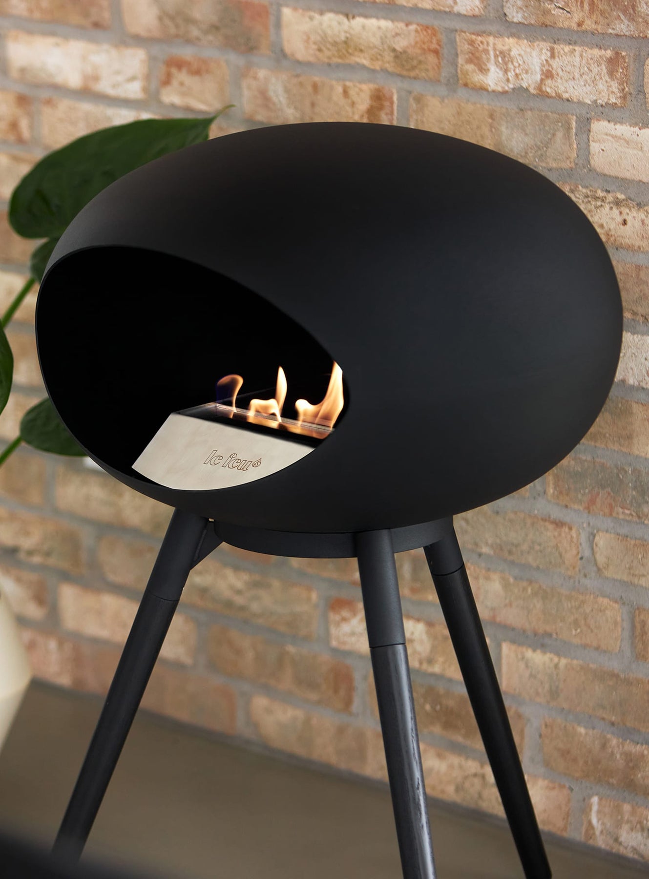 Le Feu High Dome en noir : cheminée autoportante au style raffiné et sobre.